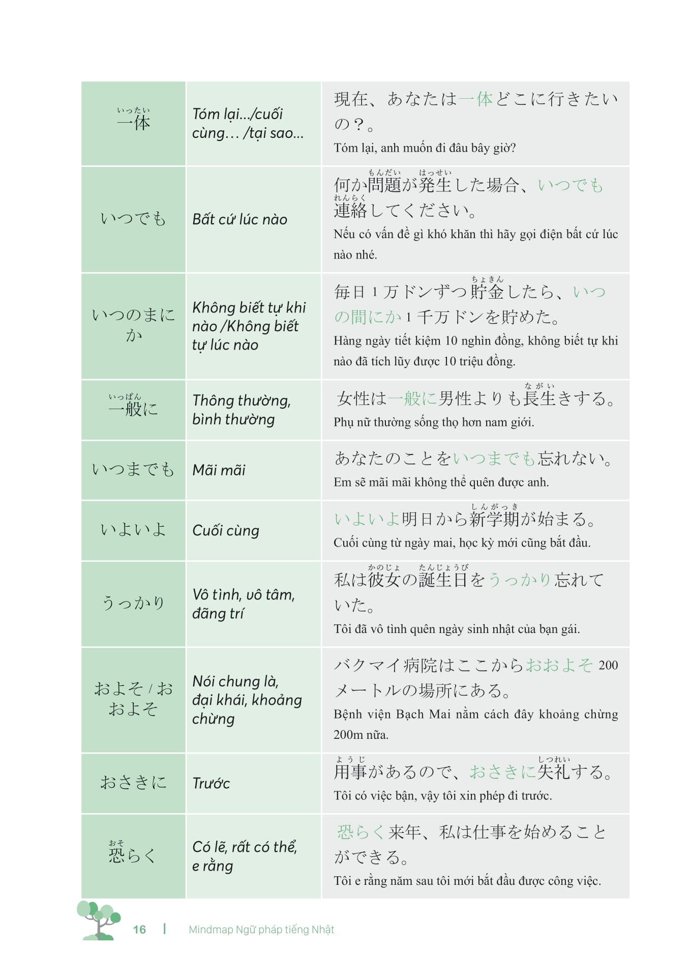 - Tổng hợp từ vựng áp dụng vào các tình huống giao tiếp thường gặp Kiến thức đạt được sau khi học cuốn sách Sau khi học xong cuốn sách Mind Map Ngữ Pháp Tiếng Nhật Trung cấp, người học có thể: