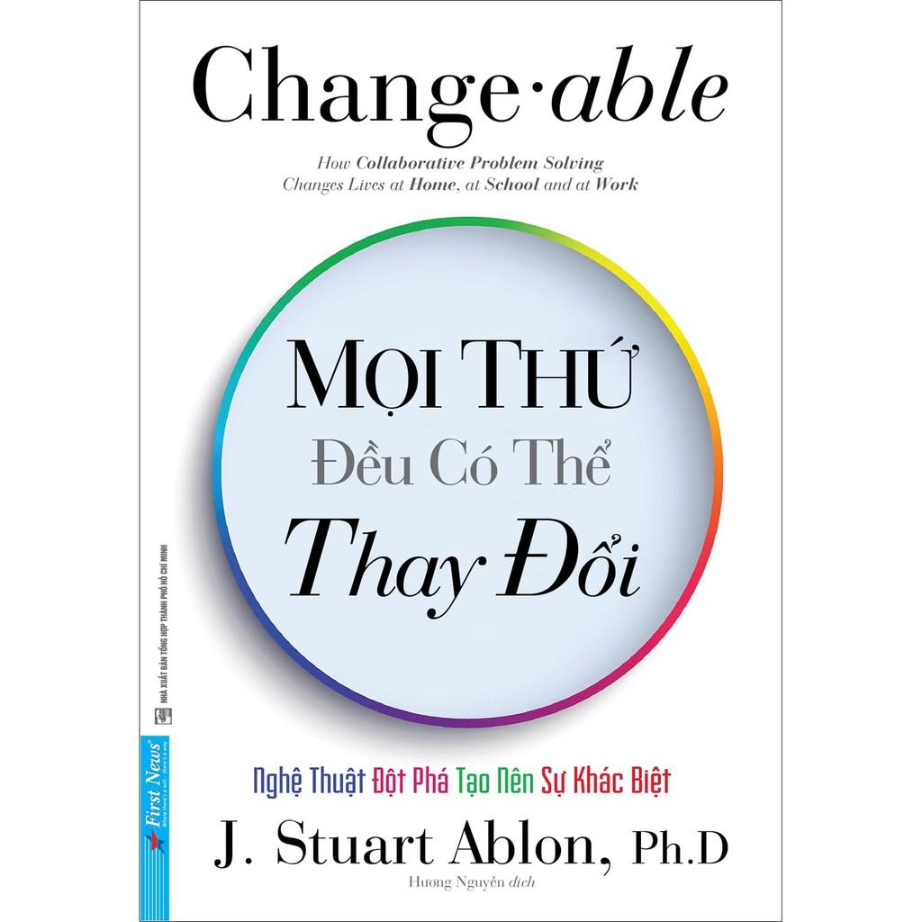 - MỌI THỨ ĐỀU CÓ THỂ THAY ĐỔI Công ty phát hành: First News - Trí Việt Tác Giả: Nhiều tác giả Ngày phát hành: 2020 Số trang:200 trang Kích thước: 14.5 x 20.5 cm NXB: NXB Tổng hợp Xuất xứ: Trong nước Ngôn ngữ: Tiếng Việt Mô tả sản phẩm: Trong Changeable - "Mọi thứ đều có thể thay đổi", J. Stuart Ablon đề xuất một phương pháp đột phá để thay đổi hành vi con người. Ông gọi là Collaborative Problem Solving (CPS) - Phương pháp giải quyết vấn đề thông qua hợp tác. Trọng tâm của phương pháp nằm ở lập luận con người không cố tình cư xử không đúng mực hay chống đối mà vì họ thiếu các kỹ năng tư duy cần thiết để đáp ứng các kỳ vọng và giải quyết xung đột. Chính vì lẽ đó, trong cuốn sách của mình, thông qua phương pháp CPS, J. Stuart Ablon đưa ra các tư duy mới về kỷ luật, xung đột, các mối quan hệ, cách giải quyết vấn đề, cũng như các công cụ đã được khoa học kiểm chứng để giải quyết các xung đột trong cuộc sống. Sách có tổng cộng 7 chương. Chương đầu tiên giới thiệu ý tưởng con người sẽ luôn cư xử đúng đắn nếu họ có khả năng làm vậy. Chương 2 cung cấp các bằng chứng khoa học cho thấy kỹ năng là yếu tố quyết định hành vi. Chương 3 xác định phương pháp thưởng phạt truyền thống gây hại nhiều hơn lợi. Chương 4 trình bày phương pháp thực tế để giải quyết vấn đề. Câu chuyện tác giả và các đồng nghiệp đã ứng dụng thành công phương pháp này như thế nào và cách ứng dụng phương pháp CPS với nhóm làm việc và gia đình, bạn bè được giới thiệu trong chương 5 và chương 6.
