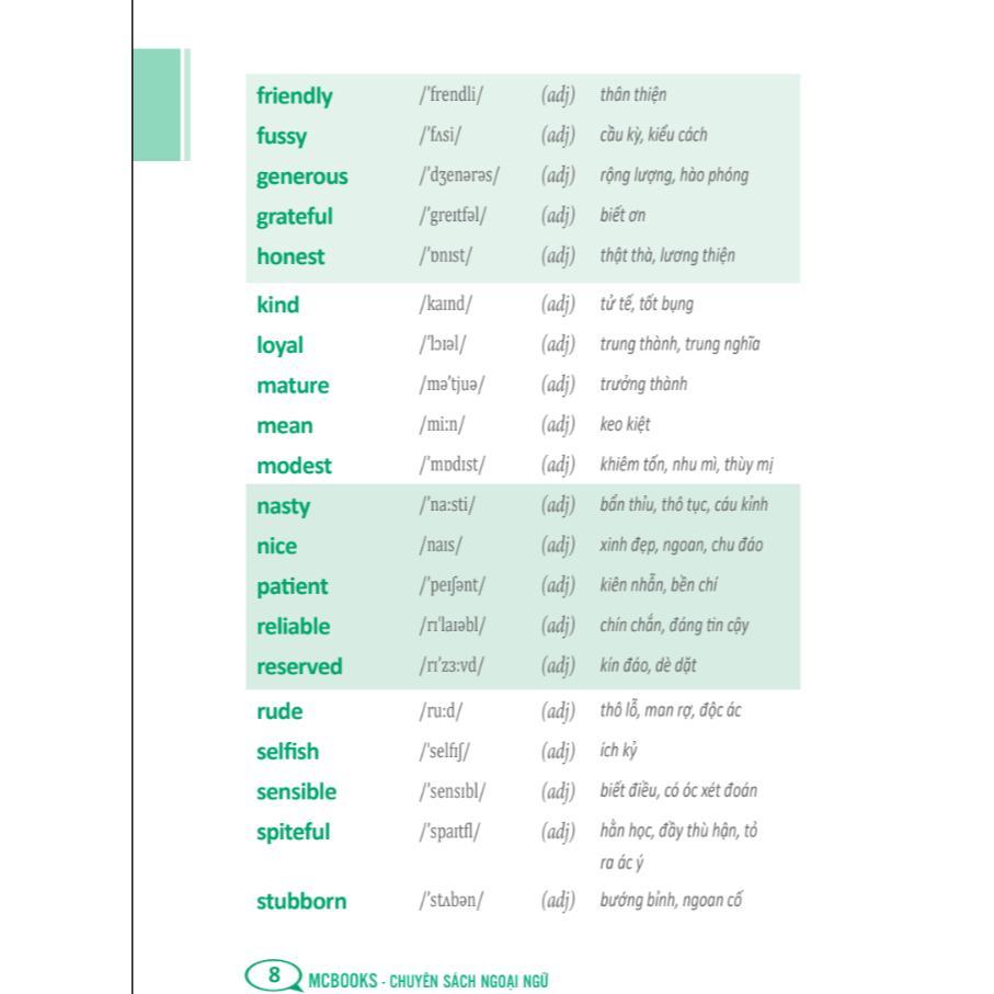 - Tự Học 2000 Từ Vựng Tiếng Anh Theo Chủ Đề Thông tin sản phẩm: -tTác giả: The Windy -tNhà xuất bản: NXB Hồng Đức -tCông ty phát hành: MCBooks -tSố trang: 260 -tNăm xuất bản: 2020 -tHình thức: Bìa mềm Nghe nói đọc viết là 4 kĩ năng quan trọng để có thể học và sử dụng tốt tiếng Anh - ngôn ngữ toàn cầu. Tuy nhiên không phải ai cũng có thể thành thạo những kĩ năng này. Nghe hiểu là một trong những kĩ năng đòi hỏi sự tập trung và rèn luyện của người học. Luyện nghe từ vựng tiếng Anh theo chủ điểm sẽ cung cấp những bài tập với trình độ nâng cao, là tài liệu bổ ích cho những ai muốn nâng cao khả năng nghe hiểu thông qua học từ vựng.