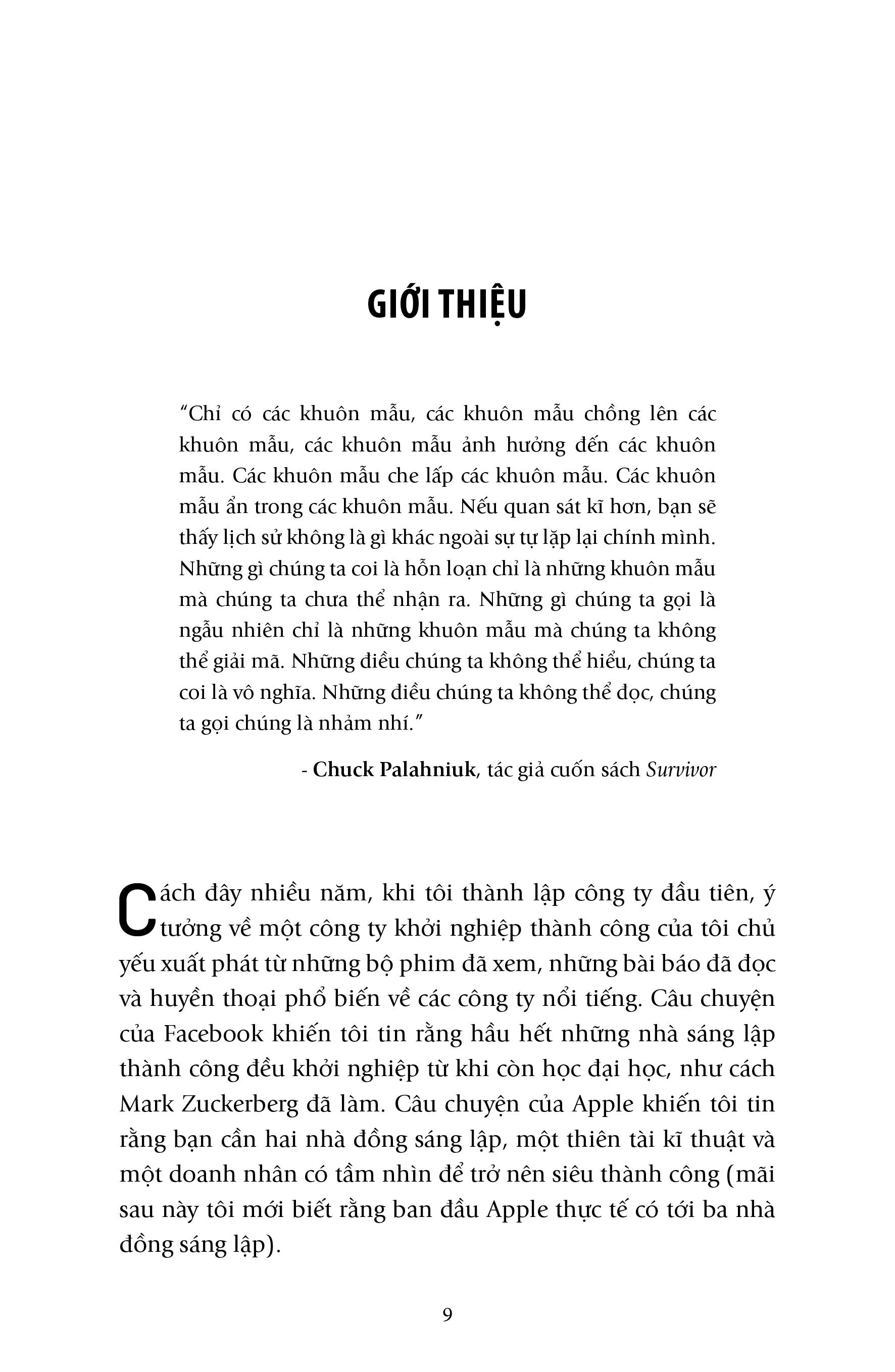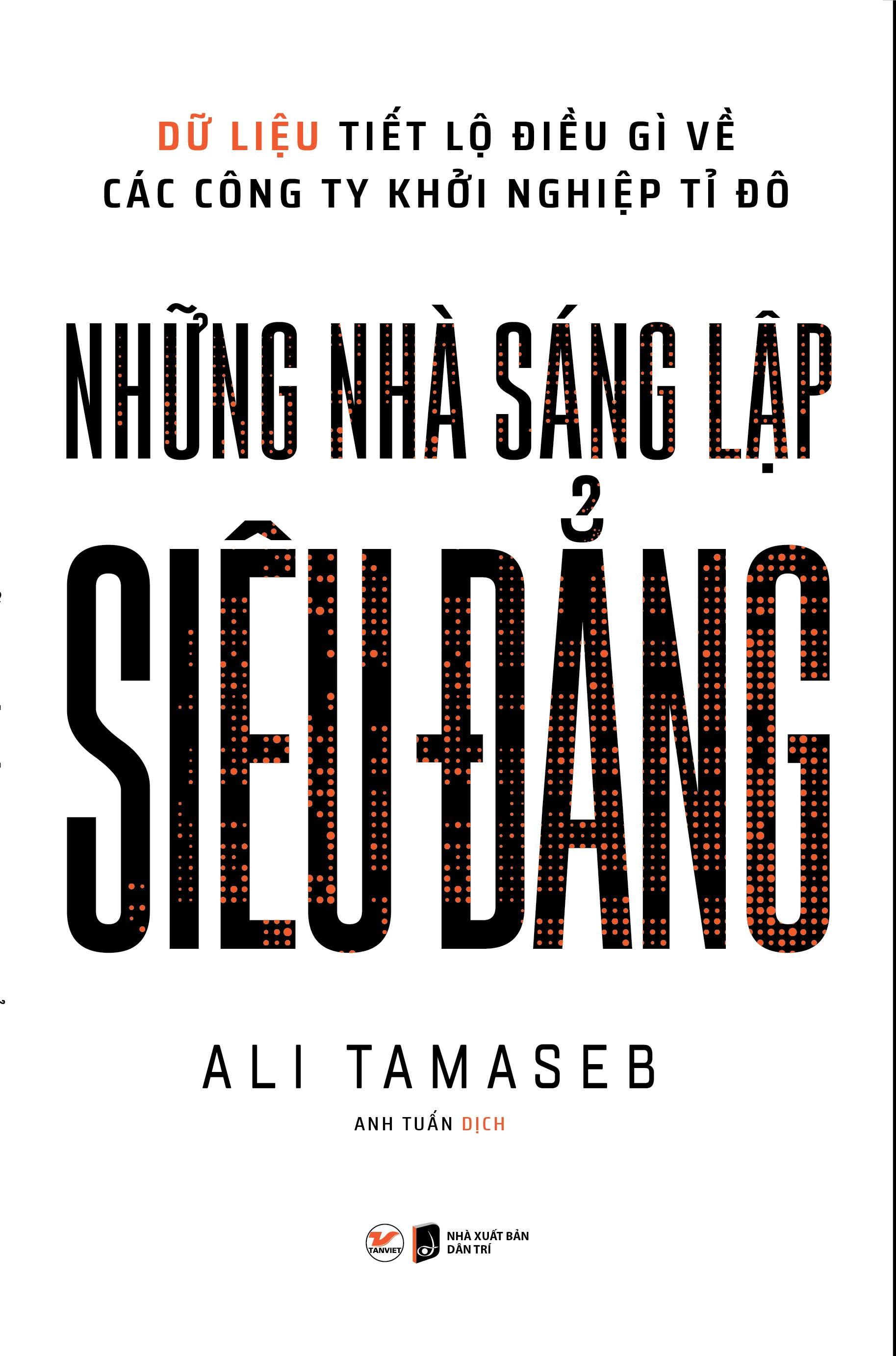 Những Nhà Sáng Lập Siêu Đẳng - Dữ Liệu Tiết Lộ Điều Gì Về Các Công Ty Khởi Nghiệp Tỉ Đô “Một nhà đầu tư mạo hiểm thành công của Thung lũng Silicon sẽ đưa bạn lên chuyến hành trình thám hiểm và khám phá các công ty kì lân.” Đã có rất nhiều cuốn sách viết về chủ đề khởi nghiệp và công ty kì lân, nhưng thường kể lại những câu chuyện có hơi hướng cổ tích, trong khi Tamaseb mang đến một sự kết hợp hấp dẫn và cuốn hút từ những dữ liệu, thông tin, số liệu, lý thuyết, cộng với những câu chuyện sâu sắc từ các nhà sáng lập và nhà đầu tư nổi tiếng. Tất cả tạo nên một cuốn sách được coi là cẩm nang cho những người đi sau, thay vì là lịch sử của kẻ đi trước. Ali Tamaseb chỉ tập trung phân tích các công ty kì lân (các công ty có trị giá hơn 1 tỉ đô la), dù những công ty này thu hút mọi sự chú ý của giới truyền thông nhưng thực chất lại không hề phổ biến: Các công ty kì lân chỉ chiếm ít hơn 0,1% trong tổng số các công ty khởi nghiệp. Cấu trúc của cuốn sách rất rõ ràng, giống như một cuốn giáo trình đại học. Phần đầu tiên được dành để giải nghĩa các hiểu lầm xung quanh các công ty khởi nghiệp và các nhà sáng lập của chúng. Tiếp đó là những câu chuyện của các công ty nổi tiếng cũng như những công ty kì lân ít nổi tiếng hơn nhưng giá trị không hề kém cạnh. Phần tiếp theo xoay quanh các mô hình kinh doanh, thời điểm để đưa sản phẩm ra mắt thị trường và cách để đối phó với sự cạnh tranh. Cuối cùng, tác giả đề cập đến một vấn đề hấp dẫn: Gọi vốn, phần này tập trung chủ yếu vào các quỹ đầu tư, các công ty đầu tư mạo hiểm cùng các nhà đầu tư thiên thần – chủ đề ít quen thuộc với các độc giả phổ thông. Điểm nổi bật đáng chú ý của Những nhà sáng lập siêu đẳng là tập dữ liệu có thể coi là lớn nhất từng được thu thập về các công ty khởi nghiệp, với mục đích so sánh các công ty khởi nghiệp trị giá hàng tỉ đô la với những công ty khởi nghiệp không thành công – 30.000 điểm dữ liệu trên rất nhiều yếu tố như số lượng đối thủ cạnh tranh, quy mô thị trường, tuổi của người sáng lập, xếp hạng trường đại học họ từng theo học, chất lượng của các nhà đầu tư, thời gian gây quỹ và còn nhiều hơn thế. Và những gì tác giả tìm thấy sau hàng nghìn giờ nghiên cứu và phân tích dữ liệu, trông khác xa so với mong đợi: