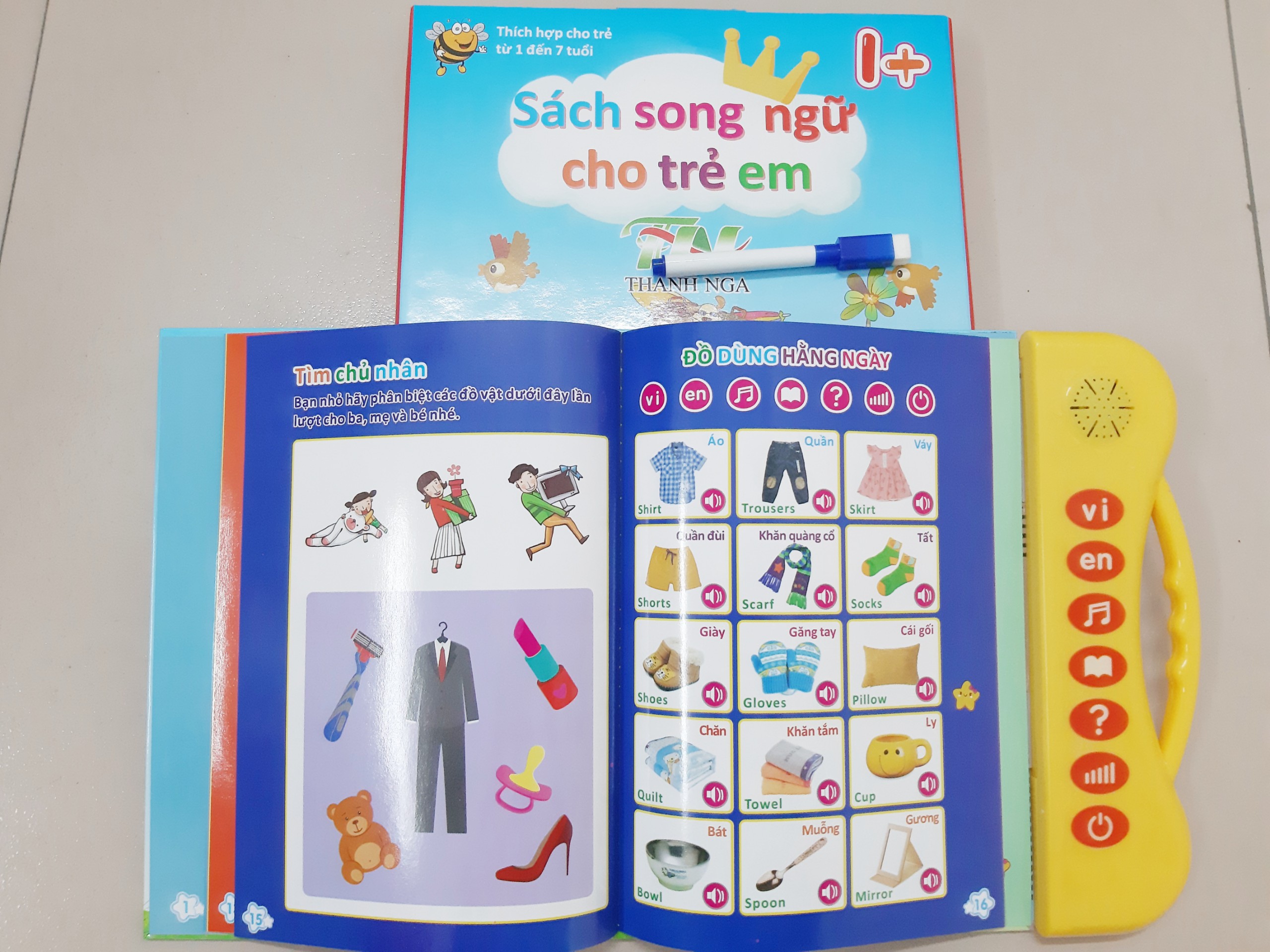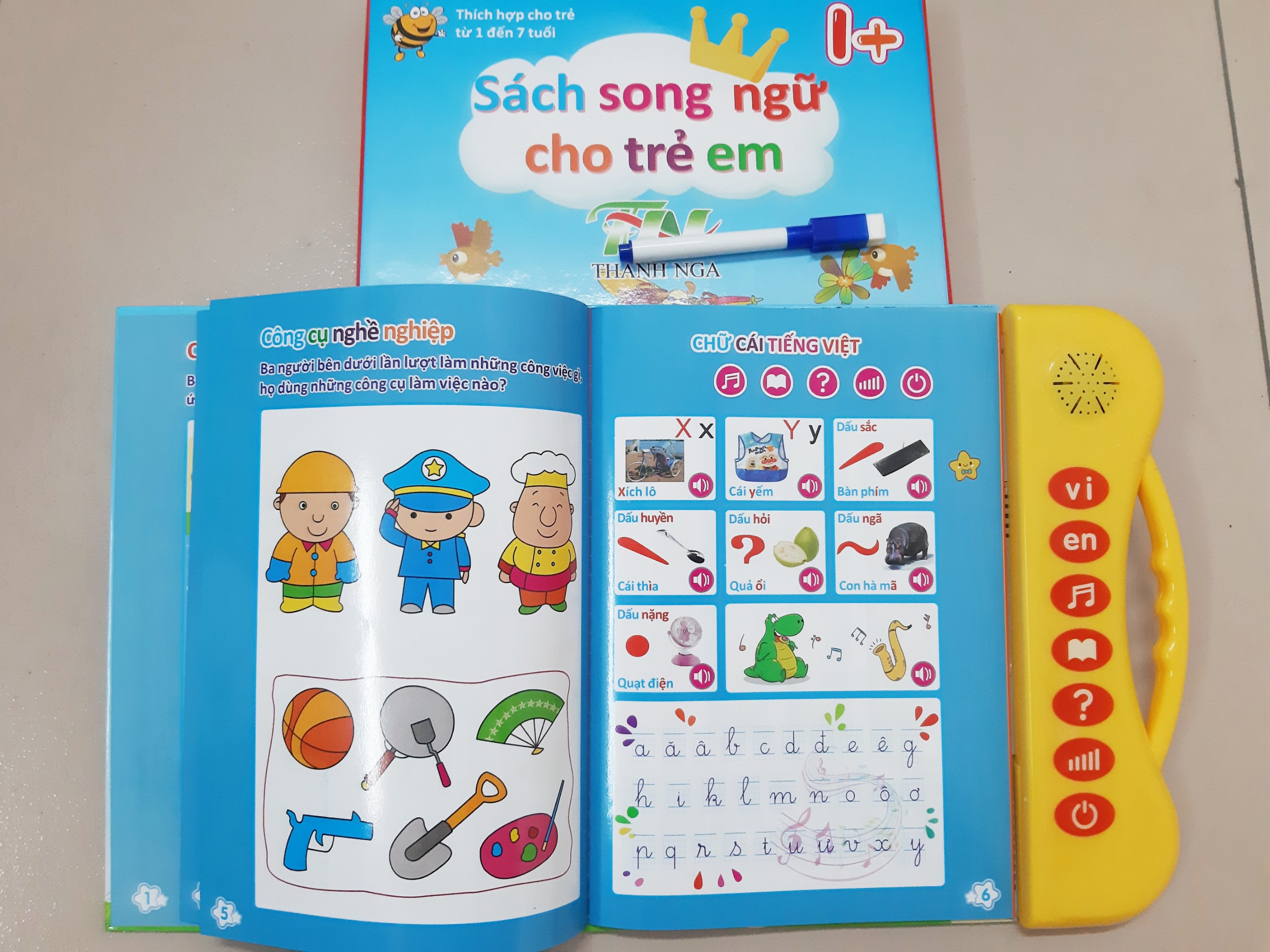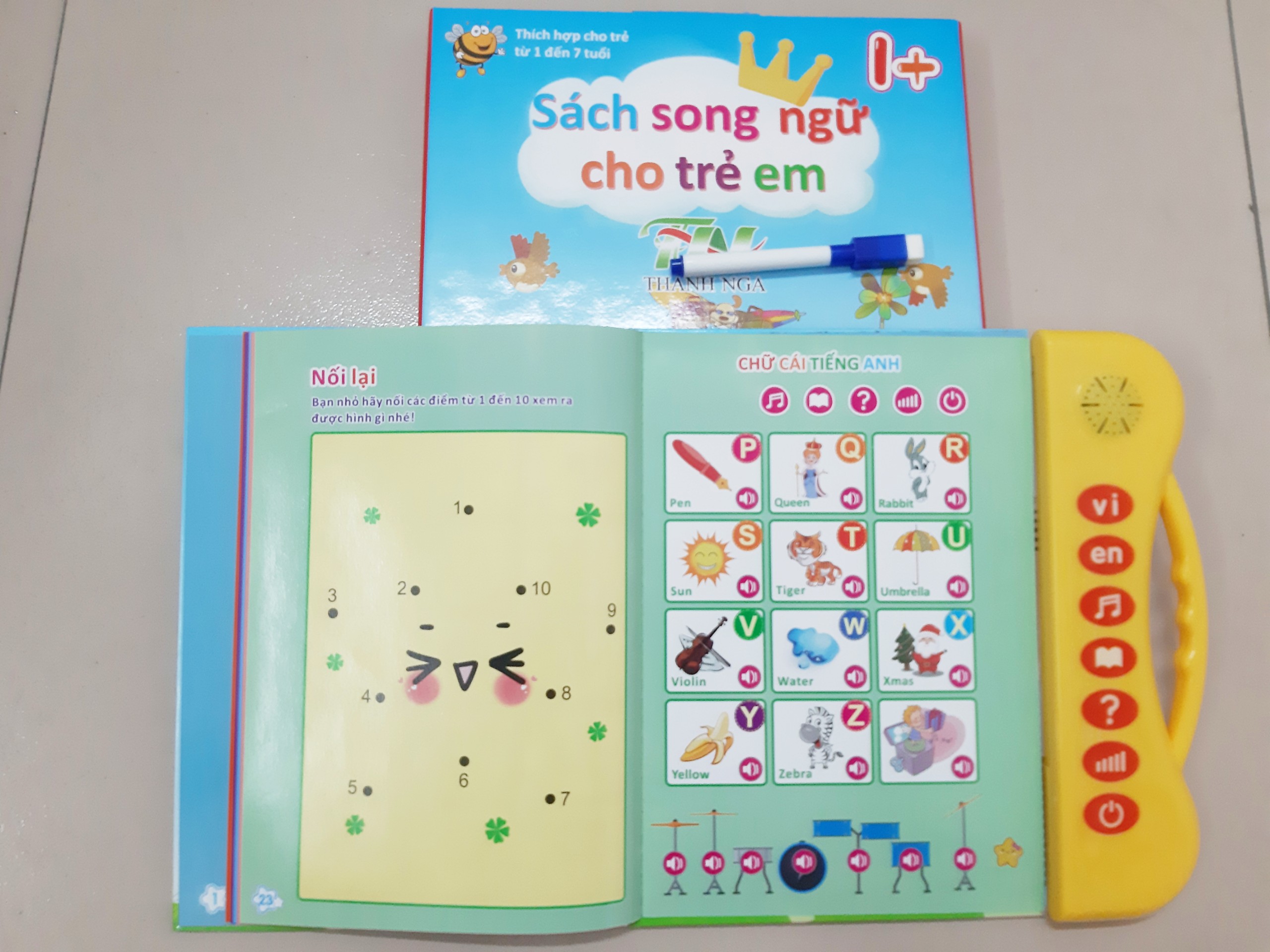 Tự động cảm biến trên từng ô chữ khi bé chạm tay vào. Giúp bé thích thú học cách nhận biết và phát âm các hình ảnh sự vật, hiện tượng, con số, làm toán... bằng tiếng Việt và tiếng Anh.