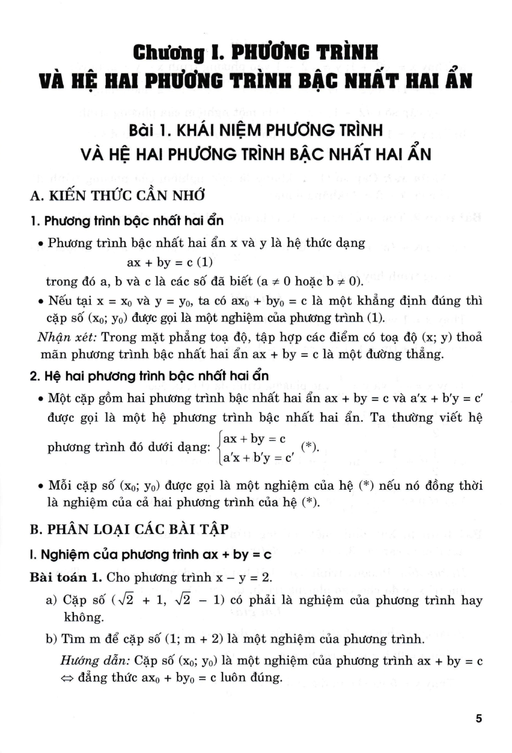 Toán lớp 9 Bài 1 Khái niệm phương trình và hệ hai PT bậc nhất hai ẩn - trang 5, 10 |Kết nối tri thức