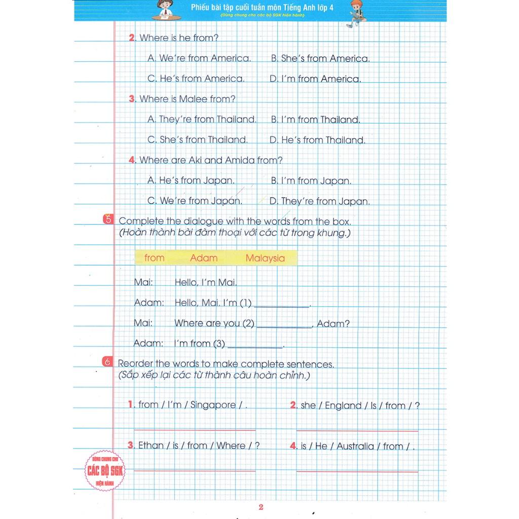 Mua tại TiktokPhiếu Bài Tập Cuối Tuần Môn Tiếng Anh Lớp 4 (Dùng Chung Cho Các Bộ SGK Hiện Hành)