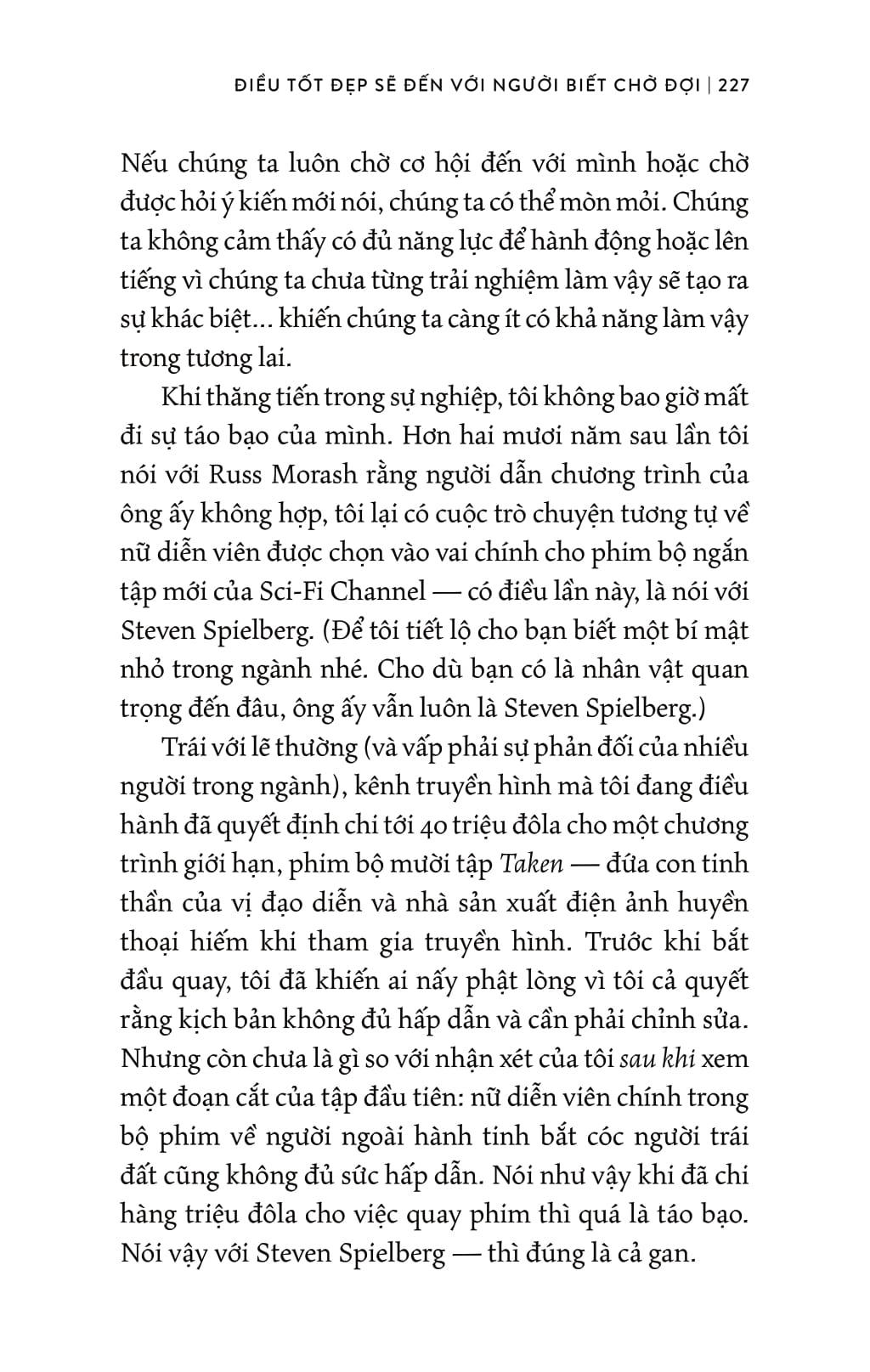 Rất có tâm, kiểu “chỗ chị em bảo nhau”, Bonnie Hammer vạch trần 15 quan niệm từ lâu đã thành khẩu hiệu hô hào, cài đặt não trạng phụ nữ bằng truyền thông đại chúng. Ở nơi làm việc, các quan niệm này biến thành những lời hứa hẹn, ngụy biện, ngộ nhận khiến cho phần lớn lao động nữ hoặc suốt đời giậm chân tại chỗ hoặc cảm thấy m.ình “không đủ giỏi”!