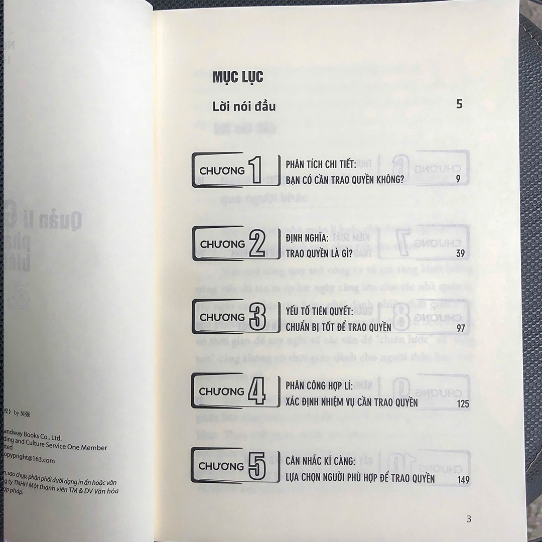 Cuốn sách này tập trung vào hai điểm chính: Thứ nhất là quy trình triển khai việc trao quyền. Phần này cung cấp nhiều kĩ năng quản lí trao quyền mang tính thực tiễn, giúp nó thực sự trở thành một giáo trình quản lí "vừa học vừa áp dụng được ngay”. Thứ hai là sự kết hợp giữa "kĩ thuật và nghệ thuật" trao quyền. Phần này tóm tắt các tình huống quản lí và những khó khăn khi quản lí, cố gắng đem lại cho các nhà quản lí những gợi mở rõ ràng hơn, bởi việc trao quyền là một nét độc đáo trong lĩnh vực quản lí, chứa đựng cả tính khoa học và nghệ thuật.