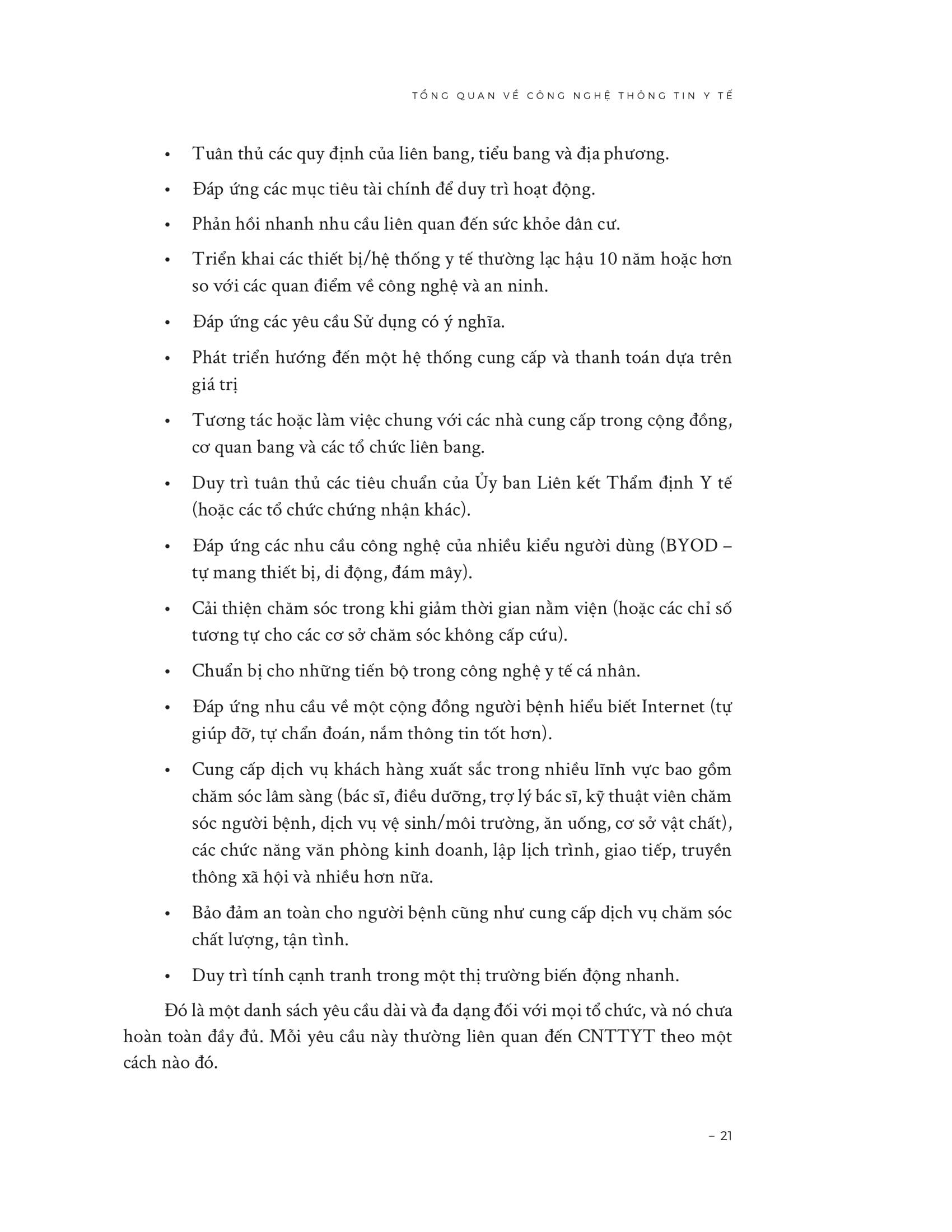 Mua tại TiktokQuản Lý Công Nghệ Thông Tin Trong Y Tế - Chiến Lược, Tầm Nhìn Và Kỹ Năng Trong bối cảnh y tế ngày càng số hóa, công nghệ thông tin y tế (CNTTYT) giữ vai trò trung tâm của hệ thống vận hành. Cuốn sách này là một cẩm nang thực hành cho lãnh đạo CNTT trong ngành y, tập trung không chỉ vào công nghệ mà còn vào kỹ năng lãnh đạo, quản trị và định hướng chiến lược. Tác phẩm bao quát từ nền tảng (chiến lược, quản trị CNTT, tạo giá trị, tiếp thị CNTT y tế) đến các chủ đề nâng cao (quản lý rủi ro, lãnh đạo, Lean IT, đổi mới, y tế số). Đây không chỉ là lý thuyết mà còn cung cấp các khung thực hành, công cụ, kỹ thuật, và case study thực tế để giúp nhà quản lý y tế và CNTT:
