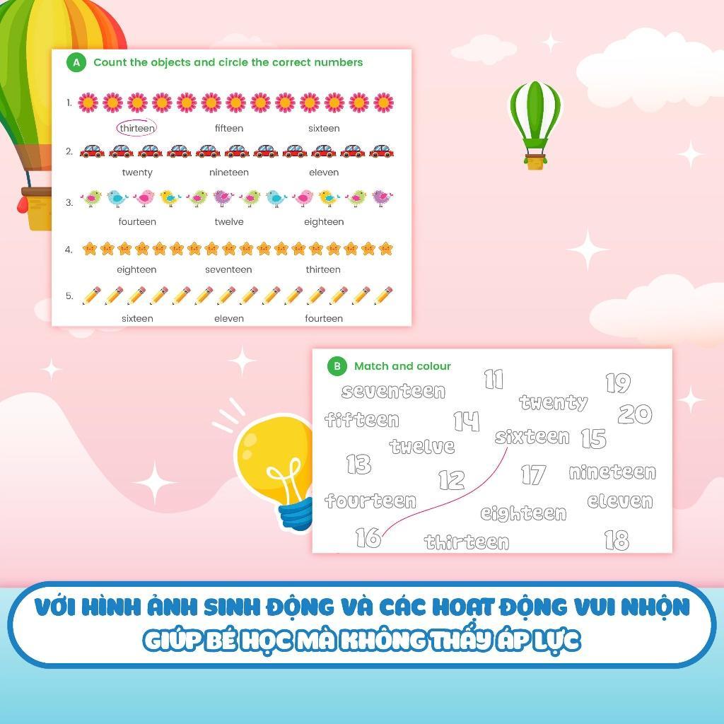 - Con phát âm chuẩn – Ghi nhớ từ vựng của 9 chủ đề quen thuộc: Số đếm, Các ngày trong tuần, Thời tiết, Đồ ăn, Hoa quả…