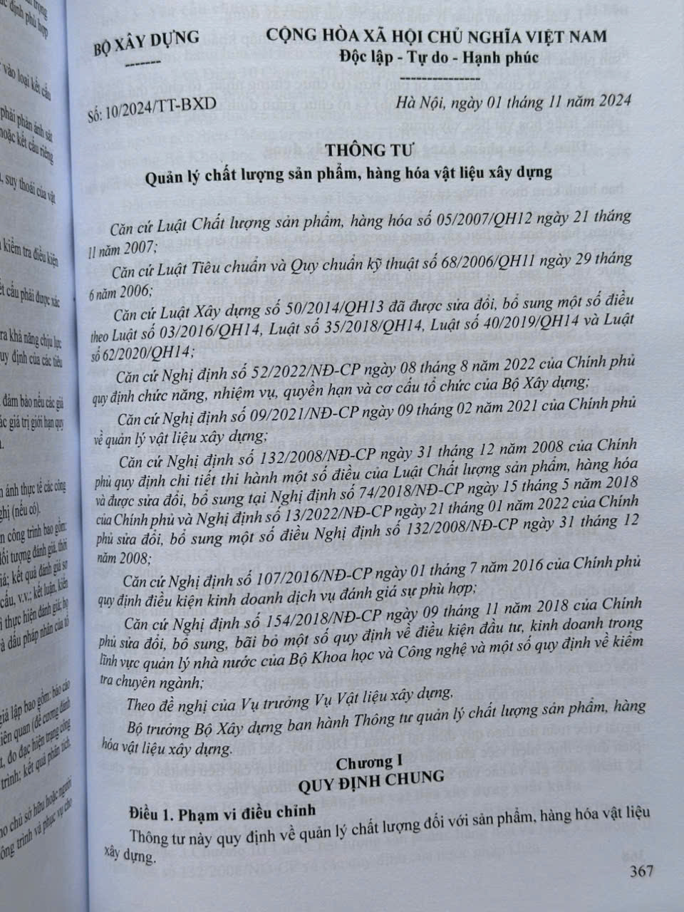 – Thông tư số 10/2024/TT-BXD ngày 01 tháng 11 năm 2024 của Bộ Xây dựng về quản lý chất lượng sản phẩm, hàng hóa vật liệu xây dựng.