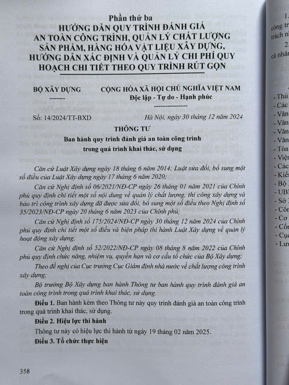 Phần thứ ba. HƯỚNG DẪN QUY TRÌNH ĐÁNH GIÁ AN TOÀN CÔNG TRÌNH, QUẢN LÝ CHẤT LƯỢNG SẢN PHẨM, HÀNG HÓA VẬT LIỆU XÂY DỰNG, HƯỚNG DẪN XÁC ĐỊNH VÀ QUẢN LÝ CHI PHÍ QUY HOẠCH CHI TIẾT THEO QUY TRÌNH RÚT GỌN