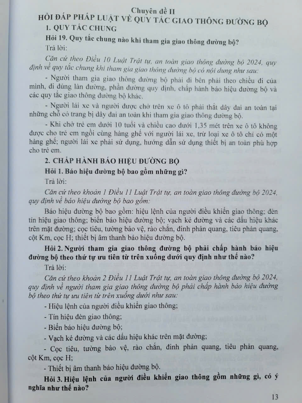 Phần thứ nhất. HỎI ĐÁP PHÁP LUẬT VỀ TRẬT TỰ, AN TOÀN GIAO THÔNG ĐƯỜNG BỘ