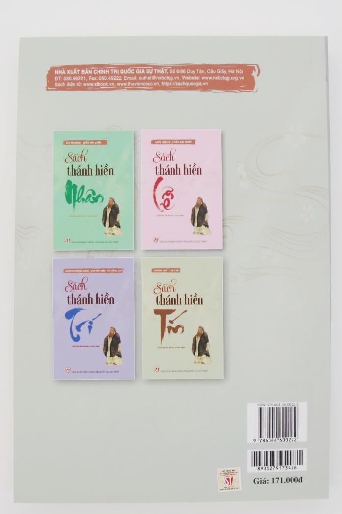 Để giúp bạn đọc có điều kiện nghiên cứu, tham khảo sâu hơn về các giá trị đạo đức của Nho giáo, Nhà xuất bản Chính trị quốc gia Sự thật xuất bản lần thứ hai, có sửa chữa ba cuốn Sách thánh hiền - Nhân, Lễ, Nghĩa. Hai cuốn Sách thánh hiền - Trí, Tín của bộ sách này hiện đang được tổ chức biên dịch, xuất bản và sẽ sớm ra mắt bạn đọc. Bộ sách do Nhà xuất bản Văn nghệ Trường Giang (Trung Quốc) phát hành năm 2011. Cuốn sách Sách thánh hiền - Nghĩa do hai tác giả Tiêu Hồng Quân và Nghê Diệc Trinh chủ biên. Nội dung đi sâu phân tích vai trò và ảnh hưởng của “Nghĩa” trong việc tu dưỡng phẩm chất đạo đức cá nhân, giúp con người giữ quy chuẩn lời nói, cử chỉ, cách đối nhân xử thế trong các mối quan hệ giao tiếp, tình cảm...