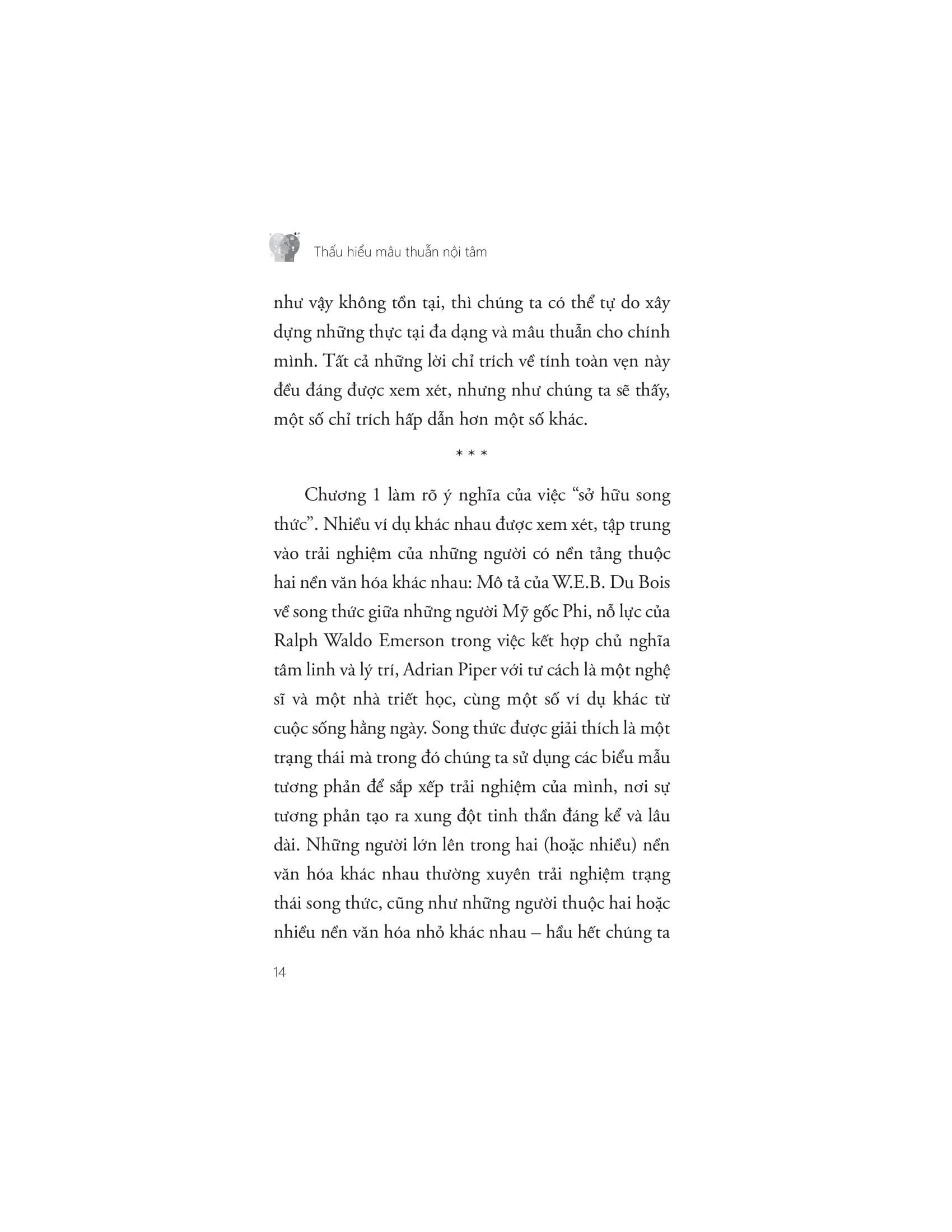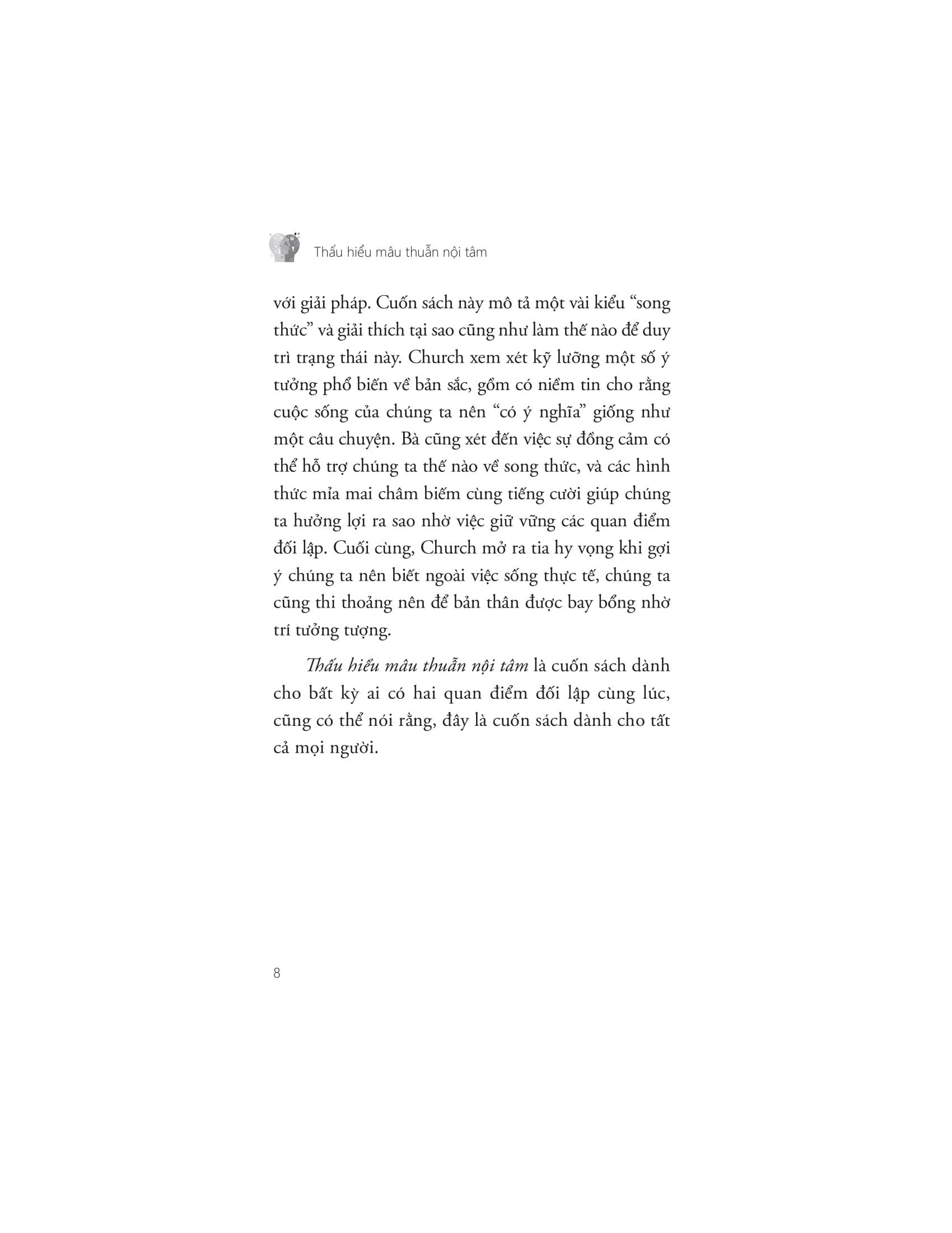 Tuy nhiên, trong cuốn sách “Thấu hiểu mâu thuẫn nội tâm” – tác giả Jennifer Church lập luận: Mâu thuẫn nội tâm có thể là một điều tốt, giúp chúng ta tự phản ánh và hiểu rõ hơn về bản thân, giá trị và niềm tin của m.ình. Cuốn sách này mô tả một vài kiểu mẫu của “song thức” hay “ý chí kép” và giải thích làm thế nào để trạng thái này được duy trì.