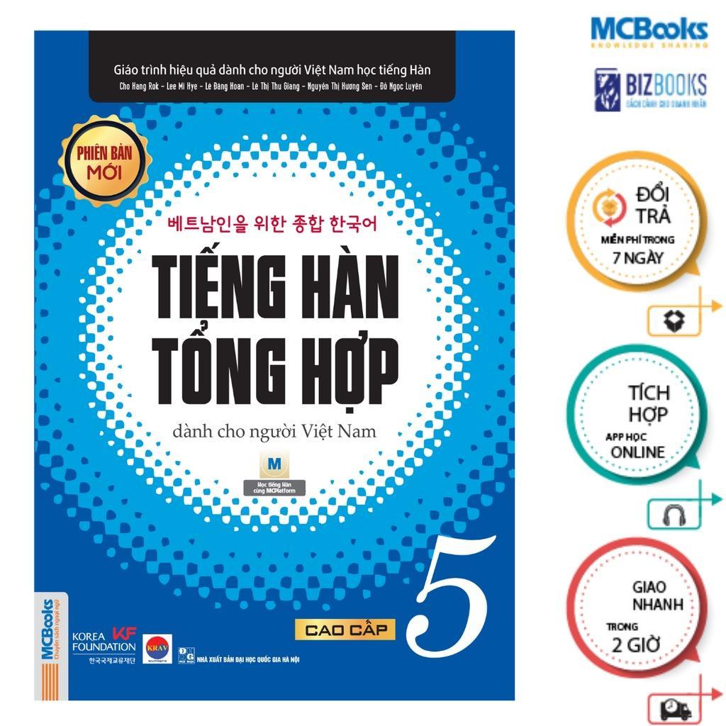 - Tiếng Hàn Tổng Hợp Dành Cho Người Việt Nam - Cao Cấp 5 - bài học Công ty phát hành MCBOOKS Tác giả Nhiều tác giả Nhà xuất bản ĐHQG Hà Nội Năm xuất bản 2020 Số trang 300 Giới thiệu sách Dưới sự đầu tư biên soạn với cấu trúc bài giảng hợp lý, bộ giáo trình tiếng Hàn tổng hợp dành cho người Việt Nam đang ngày càng phổ biến trong cộng đồng người học tiếng Hàn. Giáo trình tiếng Hàn tổng hợp cao cấp 5 là cuốn sách được biên soạn dành cho người Việt học tiếng Hàn đã hoàn thành trình độ Sơ cấp và trung cấp. Cấu trúc bài vẫn như các cuốn trước nhưng với ngữ pháp chuyên sâu và cao cấp hơn. Tương đương trình độ TOPIK 5 Tặng kèm App học online tiện ích. Bởi vậy, cuốn sách là cẩm nang không thể thiếu đối với người học tiếng Hàn hiện nay