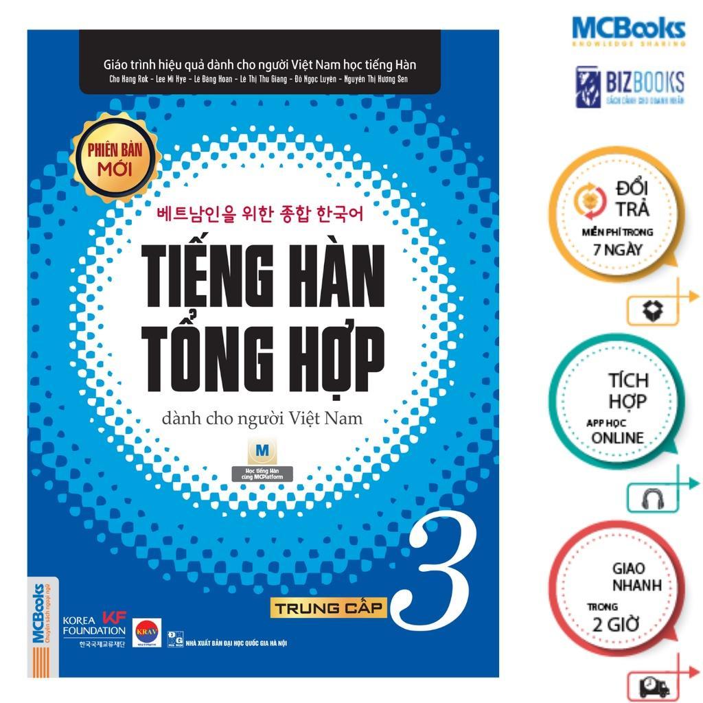 - Tiếng Hàn Tổng Hợp Dành cho Người Việt Nam 3 - bài học Công ty phát hành MCBOOKS Tác giả Nhiều tác giả Nhà xuất bản Đại Học Quốc Gia Hà Nội Năm xuất bản 2020 Số trang 400 Giới thiệu sách Nhằm xây dựng lộ trình phù hợp cho bạn học và tiếp nối sự thành công của hai cuốn giáo trình sơ cấp, giáo trình tiếng Hàn tổng hợp trung cấp 3 – bản màu (phiên bản mới – màu xanh dương) chính thức được ra mắt. Cuốn sách là cẩm nang không thể thiếu đối với người học tiếng Hàn hiện nay. Đối tượng: Dành cho các bạn đã học qua trình độ sơ cấp củng cố, nâng cao kiến thức của mình. Giúp bạn tiệm cận với tiếng Hàn ở một cấp độ cao hơn, kiến thức cũng được đào sâu hơn nhưng vẫn đảm bảo nội dung phù hợp và thuận tiện nhất cho người học. Học hết trình độ Trung cấp tương đương đạt trình độ TOPIK cấp 3 Tặng kèm APP học online học mọi lúc mọi nơi trên tất cả thiết bị di động, máy tính.