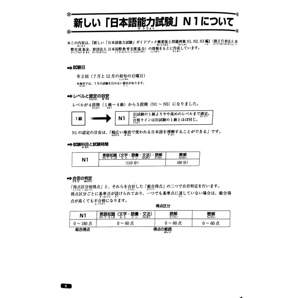 Luyện thi Năng lực Nhật ngữ N1 gồm 5 quyển Hán tự Kanji, Từ vựng Goi, Đọc hiểu Dokkai, Nghe hiểu Choukai và Ngữ pháp Bunpou. Đây là một tựa sách học tiếng Nhật hàng