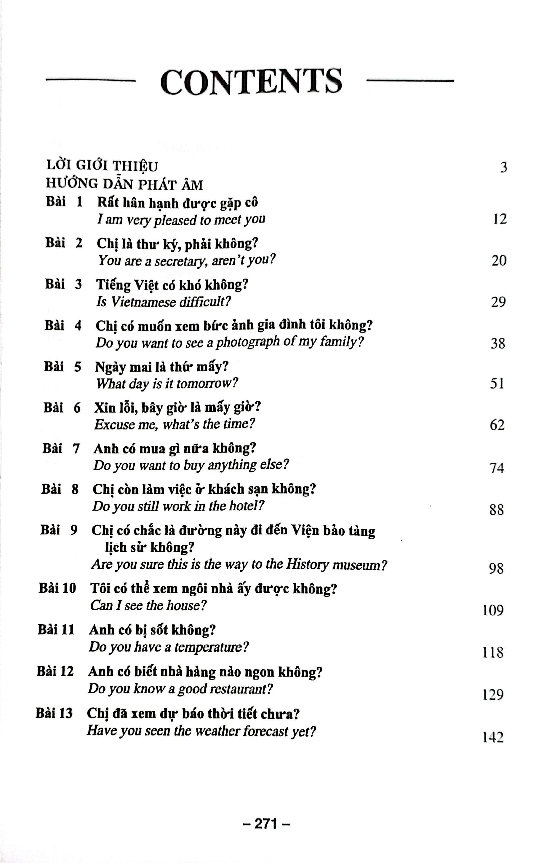 Tiếng Việt Cho Người Nước Ngoài - Vietnamese Complete Course For Beginners "Tiếng Việt cho người nước ngoài" ra đời nhằm đáp ứng nhu cầu học tiếng Việt và tìm hiểu văn hóa Việt Nam của người nước ngoài cùng với người Việt định cư ở nước ngoài ngày càng nhiều như hiện nay. Trong cuốn sách này, người học sẽ được hướng dẫn chi tiết từ cách phát âm, cách viết mẫu tự tiếng Việt, các điểm chính yếu của văn phạm tiếng Việt, đàm thoại, từ ngữ và thành ngữ, văn phạm, thực hành, luyện đọc hiểu. Phần hội thoại là các tình huống thật, giúp người học làm quen với lối giao tiếp của người Việt Nam. Cũng giống như tất cả những ngôn ngữ khác, văn viết và văn nói tiếng Việt có một số khác biệt như khi sử dụng từ lóng, thêm lối nói trang trọng trong những tình huống đặc biệt. Sách được biên soạn với mục tiêu trang bị cho học sinh, sinh viên và các đối tượng người nước ngoài mới bắt đầu học Tiếng Việt với kiến thức từ cơ bản đến nâng cao. Tập hợp những câu đơn giản và thiết thực trong giao tiếp hàng ngày cùng lượng thông tin rất lớn có thể ứng dụng trong nhiều tình huống giao tiếp khác nhau để giúp họ diễn đạt chính xác và mạch lạc khi giao tiếp với người Việt Nam. Phần bài tập kèm theo được biên soạn từ cấp độ dễ đến khó. Người học chẳng những có thể nói được tiếng Việt mà còn có thể viết được tiếng Việt một cách chính xác nhất.