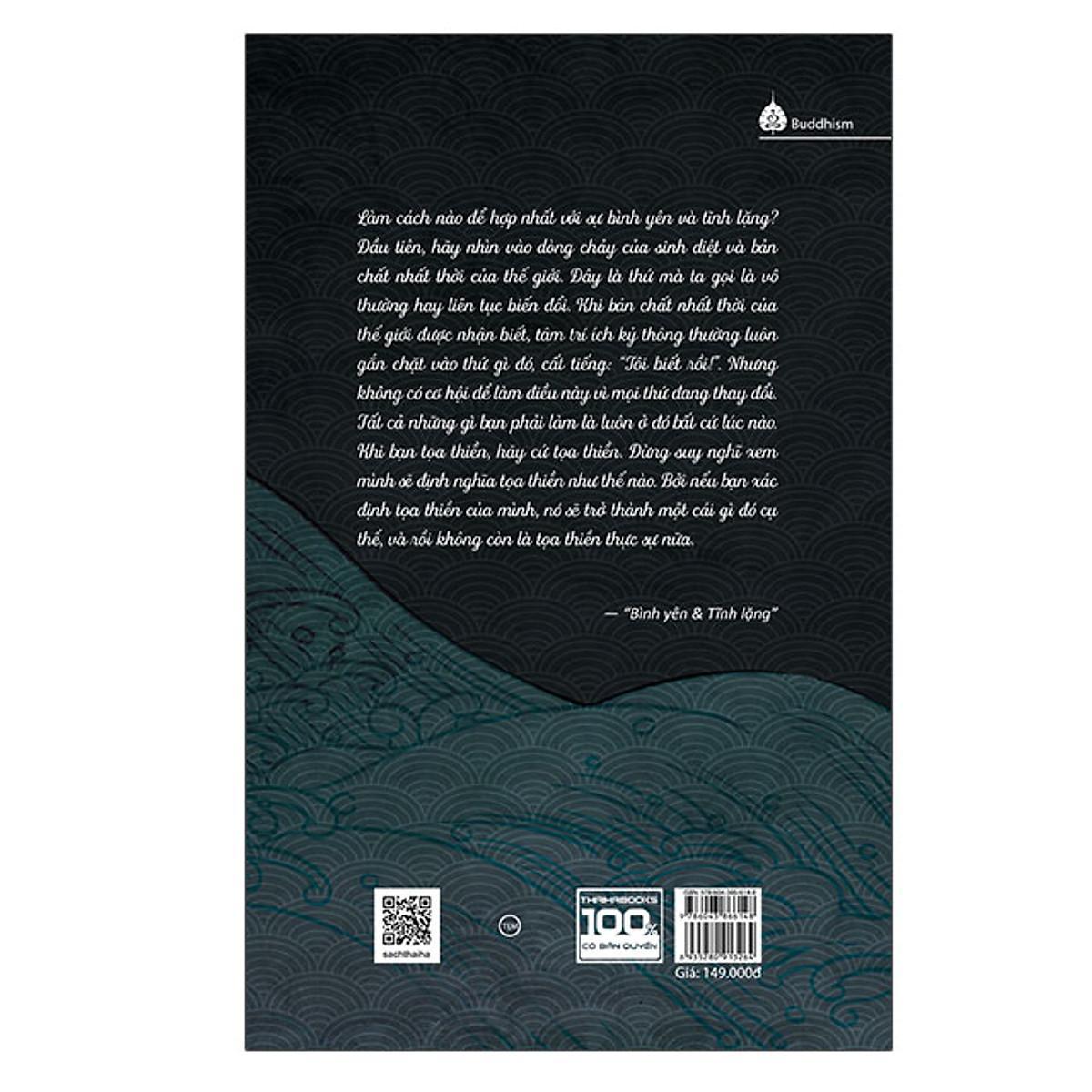 Trở về tĩnh lặng Công ty phát hành: Thái Hà Tác giả: Dainin Katagiri Số trang: 332 Nhà xuất bản: Lao Động Năm xuất bản: 2023 [ThaiHaBooks] Trong suốt hai ngàn năm trăm năm, Phật giáo dạy rằng chúng sinh đều có Phật tánh, tức đã giác ngộ, không còn thiếu thứ gì. Nhưng vẫn còn đó câu hỏi: Làm sao để nhận ra sự thật đó trong cuộc sống của mỗi người? Trong cuốn sách này, Dainin Katagiri chỉ ra hiện diện của giác ngộ ngay tại đây, ngay bây giờ, trong mỗi thói quen hằng ngày. Bản chất thuần túy nhất của tu tập nằm ở việc “chỉ sống” thật toàn tâm ý. Do đó, tọa thiền (zazen), thay vì là một phương tiện để đạt được mục đích, lại chính là một hoạt động giác ngộ. Đó là lý do Katagiri Roshi nói: “Đừng mong cầu giác ngộ. Hãy ngồi xuống thôi.” Trong cuốn sách này, Thiền sư khả kính Dainin Katagiri, cùng thời với Lão sư Suzuki Shunryu, giải thích những điểm cốt lõi của thiền trên khía cạnh tâm linh và Phật giáo, đồng thời hướng dẫn kết hợp hoạt động này trong sinh hoạt và lao động hằng ngày. Một học trò cũ của Lão sư Katagiri – cũng là một nhà sư Tào Động tông – Zuiko Redding, nói về thầy của mình như sau: “Ký ức sâu sắc của tôi về thầy là cách thầy chú ý hoàn toàn đến những gì trước mặt mình. Thầy quan tâm đến từng thứ một, như thể đó là điều quan trọng nhất trên đời, cho dù đó là vứt rác hay nói chuyện với người khác. Thầy thực sự lắng nghe và cố gắng đưa ra câu trả lời tốt nhất mà thầy biết. Thầy cũng khuyến khích mỗi chúng tôi đứng trong không gian của riêng mình, theo sự khôn ngoan của riêng mình, thay vì phụ thuộc vào thầy để có được câu trả lời. Đôi khi, tôi nói với thầy chính xác những gì tôi nghĩ về một số ý tưởng mà thầy có, chỉ để thấy thầy mỉm cười rộng lượng với tôi, vui mừng vì tôi đã không tin tưởng vô điều kiện vào những gì thầy nói”.
