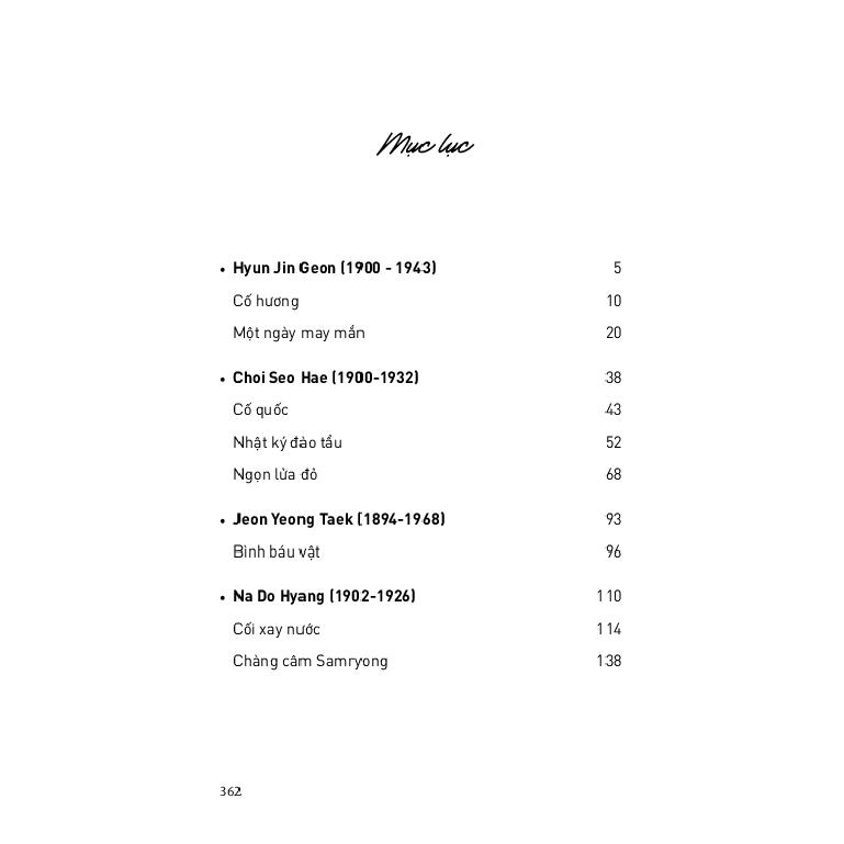 Tác giả: Nhiều tác giả Dịch giả: Trang Hoàng, Min Yu Jin dịch. Bảo Châu hiệu đính Khổ sách: 13x20 Số trang: 364 Giá bán: 180,000 VNĐ ISBN: 978-604-1-25374-2 In lần thứ 1 năm 2024 NXB: NXB Trẻ NPH: NXB Trẻ Giới thiệu tóm tắt tác phẩm: "Truyện ngắn hiện đại Hàn Quốc tiêu biểu - Kiên cường trong gian khó" được tuyển chọn từ những tác phẩm in trong Sách giáo khoa Quốc ngữ và Sách giáo khoa Văn học tại Hàn Quốc. Tuyển tập bao gồm những truyện ngắn được sáng tác từ thời kỳ đầu của nền văn học cận đại Hàn Quốc đến cuối những năm 1980, tái hiện những băn khoăn, trăn trở của một vùng đất cổ xưa trước những xáo trộn của thời cuộc. Nổi bật lên trên tất cả là cuộc chiến sinh tồn gian nan của tầng lớp khốn cùng dưới ách thống trị của kẻ xâm lược, là bi kịch của chiến tranh và sự chia cắt, là những cuộc đấu tranh nhằm bảo vệ và giữ gìn những điều tốt đẹp của Hàn Quốc hôm qua, hôm nay, và ngày mai. Tác phẩm giới thiệu một số nhà văn nổi bậc nhất ở Hàn Quốc, bao gồm Hyun Jin Geon, Choi Seo Hae, Jeon Yeong Taek, Na Do Hyang, Jo Myeong Hee, Kim Jeong Han, Park Hwa Seong, cũng như cây bút xuất sắc đương đại Lee Moon Gu.