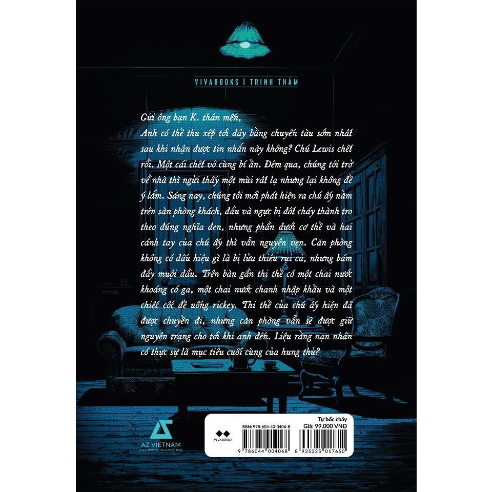 Anh có thể thu xếp tới đây bằng chuyến tàu sớm nhất sau khi nhận được tin nhắn này không? Chú Lewis chết rồi. Một cái chết vô cùng bí ẩn. Đêm qua, chúng tôi trở về nhà thì ngửi thấy một mùi rất lạ nhưng lại không để ý lắm. Sáng nay, chúng tôi mới phát hiện ra chú ấy nằm trên sàn phòng khách, đầu và ngực bị đốt cháy thành tro theo đúng nghĩa đen, nhưng phần dưới cơ thể và hai cánh tay của chú ấy thì vẫn nguyên vẹn. Căn phòng không có dấu hiệu gì là bị lửa thiêu rụi cả, nhưng bám đầy muội dầu. Trên bàn gần thi thể có một chai nước khoáng có ga, một chai nước chanh nhập khẩu và một chiếc cốc để uống rickey. Thi thể của chú ấy hiện đã được chuyển đi, nhưng căn phòng vẫn sẽ được giữ nguyên trạng cho tới khi anh đến…