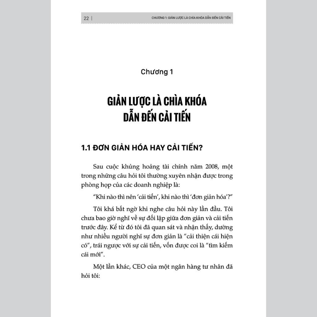 • Kiến tạo những trải nghiệm thương mến: Mục đích của sự đơn giản là để lại hiệu ứng cảm xúc tích cực, cho dù đó là sự tin tưởng, niềm vui hay yêu thích Tất cả các bước tối ưu đều được tác giả trình bày một cách chi tiết với hướng dẫn cụ thể. Trong quá trình đơn giản hoá, có thể bạn sẽ thấy các vấn đề trở nên phức tạp hơn. Nhưng không sao, đó là vì chúng ta phải lật tung các vấn đề lên để tìm cách giải quyết, chỉ cần bạn nắm kỹ nhưng phương pháp được trình bày trong cuốn sách này, bạn sẽ biết cách đơn giản hoá để dẫn dắt doanh nghiệp của mình. Thông tin chi tiết cuốn sách Từ Đơn Giản Đến Trường Tồn - Đổi Mới Để Dẫn Dắt Công Ty Bước Lên Tầm Cao - MCBooks