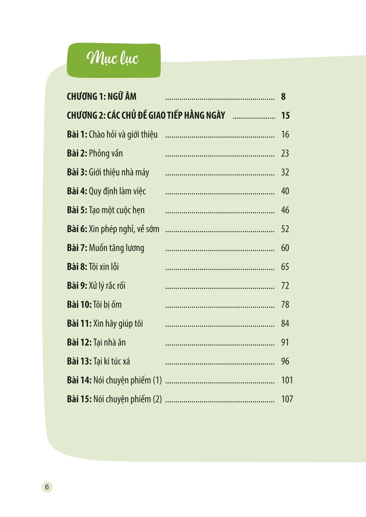 Nội dung của cuốn sách này chủ yếu là các mẫu câu ngắn gọn, thường gặp trong cuộc sống, từ việc bàn về thời gian, ngày tháng, thời tiết đến khám chữa bệnh, thuê xe,