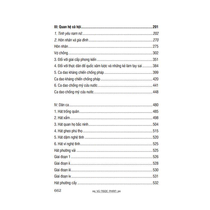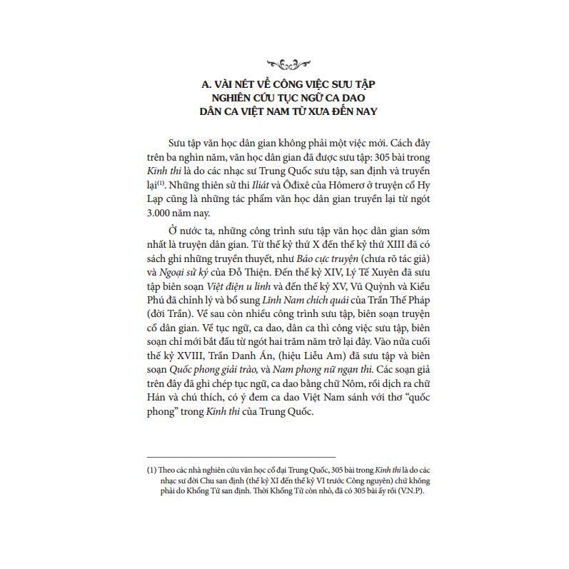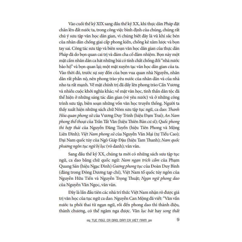 Đặc biệt, cuốn sách còn có phần biên khảo rất sớm (với tầm nhìn xa trông rộng) và rất giá trị về dân ca, bao gồm các loại hình như: hát trống quân, hát xẩm, hát quan họ Bắc Ninh, hát ghẹo Phú Thọ, hát ví, hát giặm Nghệ Tĩnh, hò Huế, dân ca miền Nam Trung Bộ, dân ca Nam Bộ…