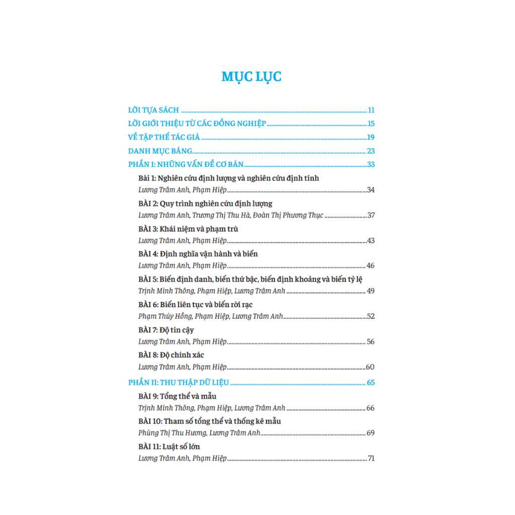• Phần 1: Những vấn đề cơ bản: Những khái niệm cơ bản về nghiên cứu định lượng, vận hành và biến, độ tin cậy, độ chính xác,...