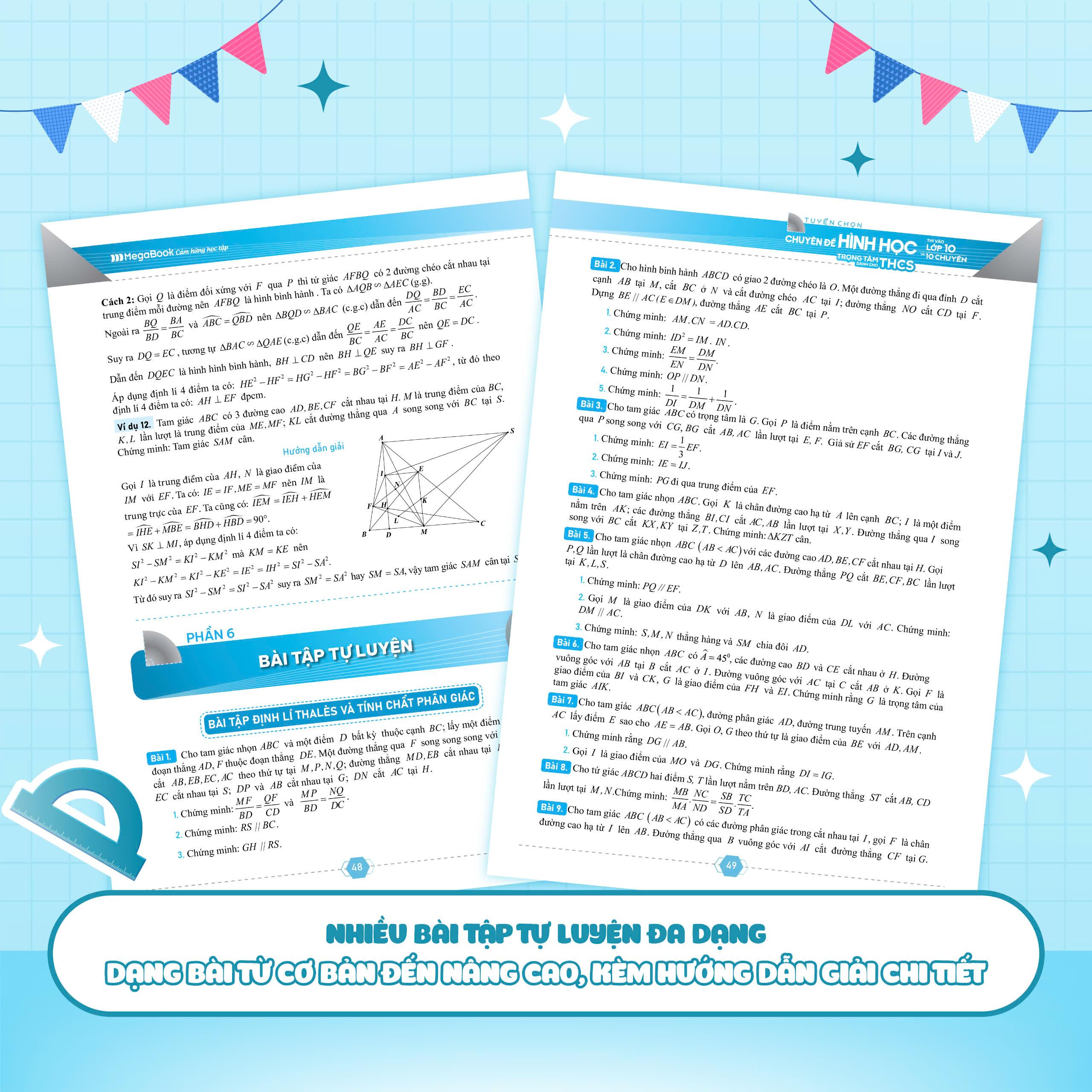 Tuyển chọn chuyên đề hình học trọng tâm dành cho THCS thi vào lớp 10 và 10 chuyên là cuốn sách giúp học sinh lớp 9 hệ thống hóa kiến thức hình học phẳng từ cơ bản đến nâng cao. Với 7 chuyên đề chính, sách cung cấp lý thuyết cô đọng, ví dụ minh họa chi tiết và các bài tập chọn lọc từ các kỳ thi học sinh giỏi toàn quốc và quốc tế. Đây là tài liệu không thể thiếu cho các bạn học sinh lớp 9 muốn rèn luyện tư duy hình học, nâng cao kỹ năng giải toán và chinh phục các kỳ thi vào lớp 10 và 10 chuyên.