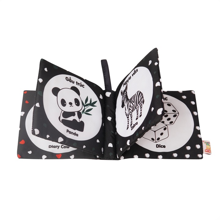 SÁCH VẢI ĐA GIÁC QUAN – TỚ LÀ ĐỐM TRẮNGSách vải đa giác quan Happi TỚ LÀ ĐỐM TRẮNG là sản phẩm đồ chơi Việt Nam, được thiết kế bằng bằng màu chủ đạo là ĐEN & TRẮNG thông qua các hình ảnh sinh động...