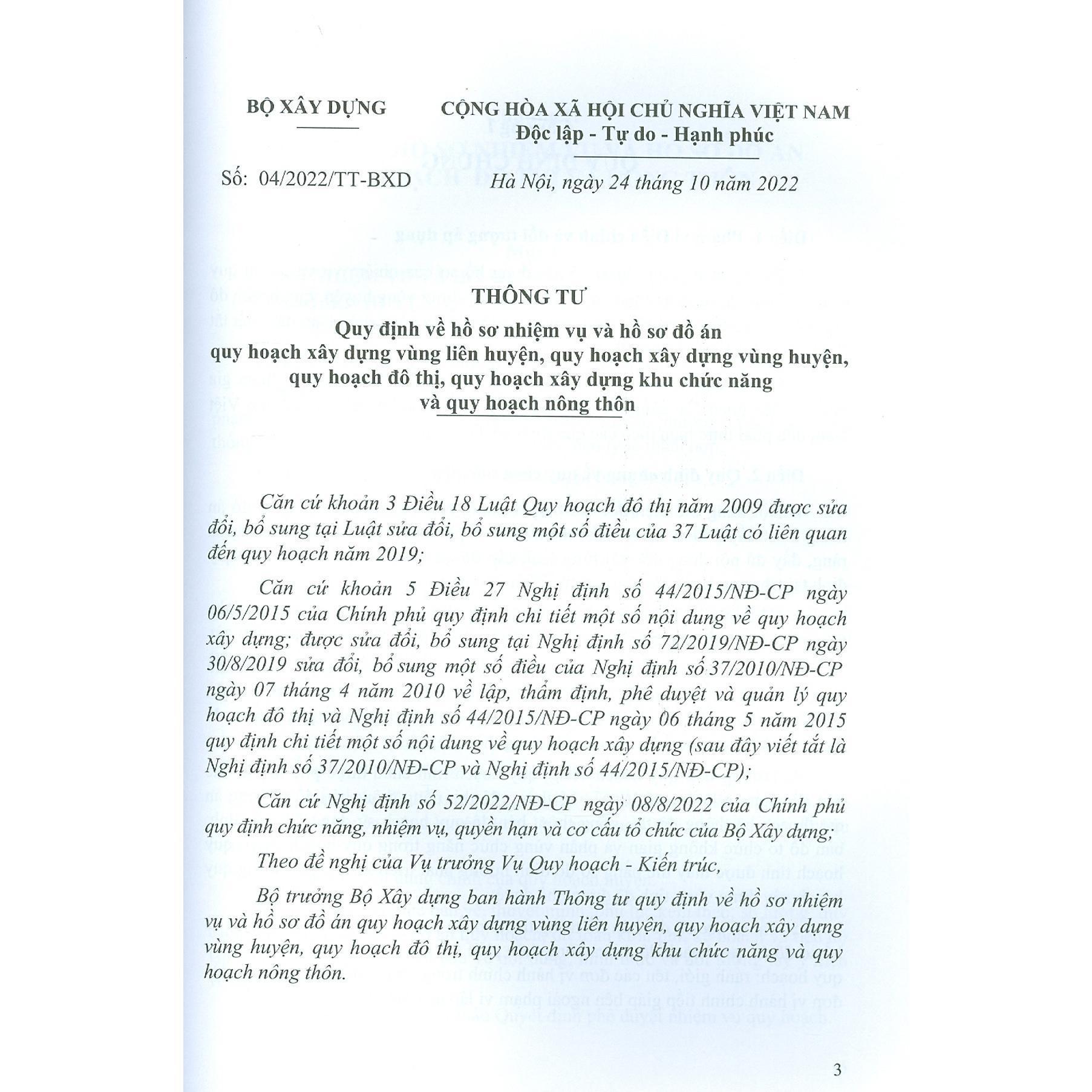 Bộ trưởng Bộ Xây dựng ban hành Thông tư quy định về hồ sơ nhiệm vụ và hồ sơ đồ án quy hoạch xây dựng vùng liên huyện, quy hoạch xây dựng vùng huyện, quy hoạch đô thị, quy hoạch xây dựng khu chức năng và quy hoạch nông thôn.