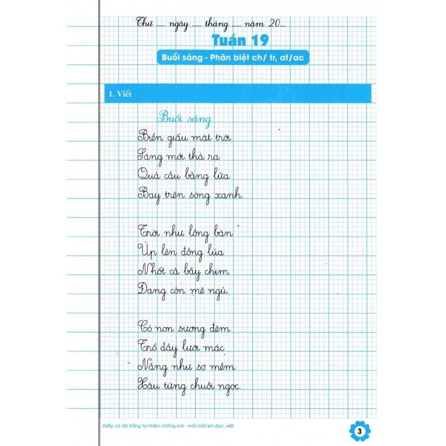 Vở Thực Hành Chính Tả Lớp 3 Tập 2 (Dùng Chung Cho Các Bộ SGK Hiện Hành) được bố cục theo từng tuần học, nhằm củng cố kiến thức cơ bản, giúp các em học sinh luyện kỹ năng viết đúng, viết đẹp. Bên cạnh đó, phần bài tập điền từ, điền chữ cái thích hợp vào ô trống giúp các em rèn luyện khả năng ghép từ, đánh vần, đặt câu đúng ngữ pháp,...