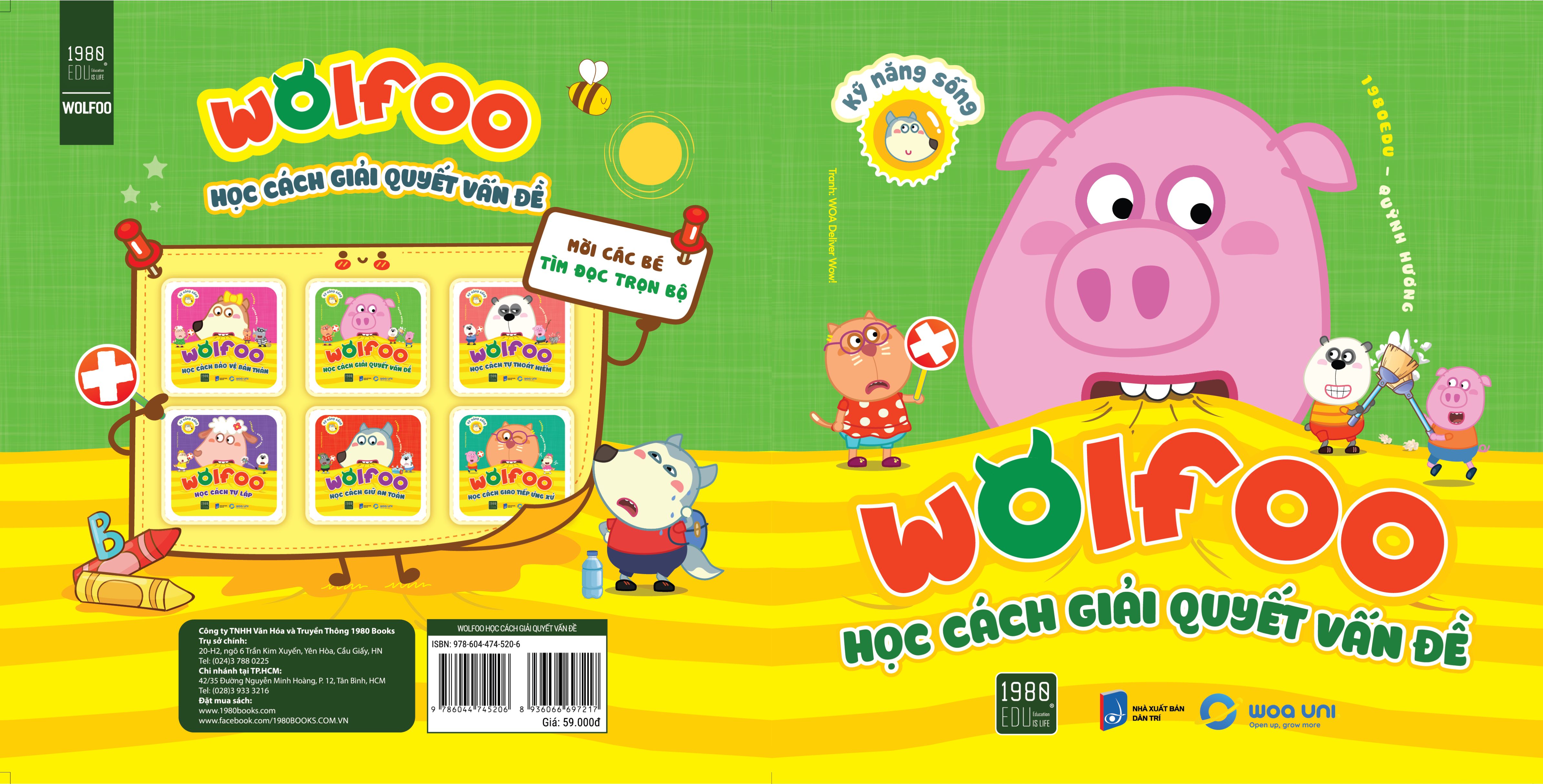 TÁC GIẢ: 1980Edu – Quỳnh Hương Dịch giả: THÔNG TIN XUẤT BẢN: Kích thước: 20x20cm Số trang: 28 Mã EAN:8936066697217 NXB liên kết: NXB Dân Trí Sách do Công ty TNHH Văn hóa và Truyền thông 1980 BOOKS ấn hành quý III/2023. Wolfoo Học Cách Giải Quyết Vấn Đề Việc dạy và bồi dưỡng cho trẻ những kỹ năng sống ngay từ nhỏ không bao giờ là quá sớm. Đó luôn là những kiến thức cần thiết để giúp trẻ tự tin hơn bước vào cuộc sống. “ Wolfoo học kỹ năng sống” là một bộ sách gồm 6 cuốn xoay quanh các kỹ năng an toàn, thoát hiểm, quy tắc ứng xử và thói quen tốt. Bộ sách bao gồm: