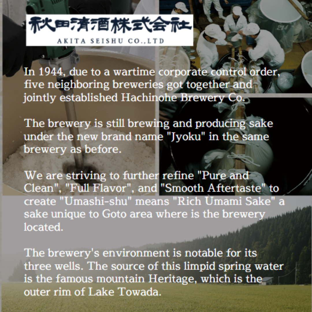 Jyoku Hanaomoi Junmai Daiginjo 100% gạo dùng ủ rượu sake này được gọi là “ Hanamoi”, một phước lành của vùng Aomori. Loại rượu sake Junmai Daiginjo này có hương thơm đậm đà và mùi