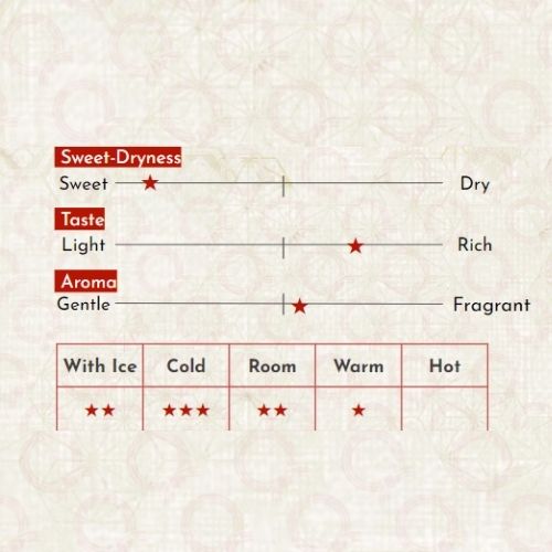 Dewatsuru Sakura Emaki Đẹp đúng như tên gọi, từ hình dáng đến hương vị, nhắc đến sakura, người ta sẽ nghĩ ngay đến hoa anh đào, biểu tượng của sự xinh đẹp trong khi Emaki đề cập về những cuộn tranh minh họa trong cuốn tiểu thuyết đầu tiên "The Tales of Genji". Chai sake Sakura Emaki ra đời với ý nghĩa "Hãy đến thưởng thức nó và viết nên câu chuyện cuộc đời của riêng bạn". Mùi vị say đắm của loại sake này tựa như hoa hồng tỏa hương. Sắc hồng dịu nhẹ và lôi cuốn hệt như những cánh hoa anh đào là sự nắm bắt màu sắc tuyệt đối từ giống lúa tím cổ truyền làm nên rượu. Phảng phất chất thơm của hoa anh đào và mận, được điểm tô bởi những nốt hương của táo và quả mọng, rượu Sakura Emaki với chút vị ngọt được cân bằng bởi độ axit trên vòm miệng. Tạo nên hương vị lưu luyến khiến người ta nhớ mãi không quên! Dewatsuru Sakura Emaki được khuyên là nên ướp lạnh và thưởng thức nó trong một chiếc ly thủy tinh mỏng để cảm nhận trọn vị ngọt và chua tuyệt vời của nó. Ngoài ra Sakura Emaki còn chứa một hàm lượng cao các các chất xơ, vitamin và những chất chống oxi hóa tốt cho cơ thể người dùng. Thành phần: Gạo Asamurasaki/Okunomurasaki, men Koji. Đánh bóng gạo: 60% Độ axit: 2.8% SMV( sake meter value): -21 Độ cồn: 11%-11.9% Lưu ý độ tuổi được phép sử dụng đồ uống có cồn, phụ nữ mang thai và cho con bú nên hạn chế dùng. NSX: Akita Seishu.co,.ltd NK&PP: Công ty TNHH STARMARK VIETNAM Xuất xứ: Nhật Bản.