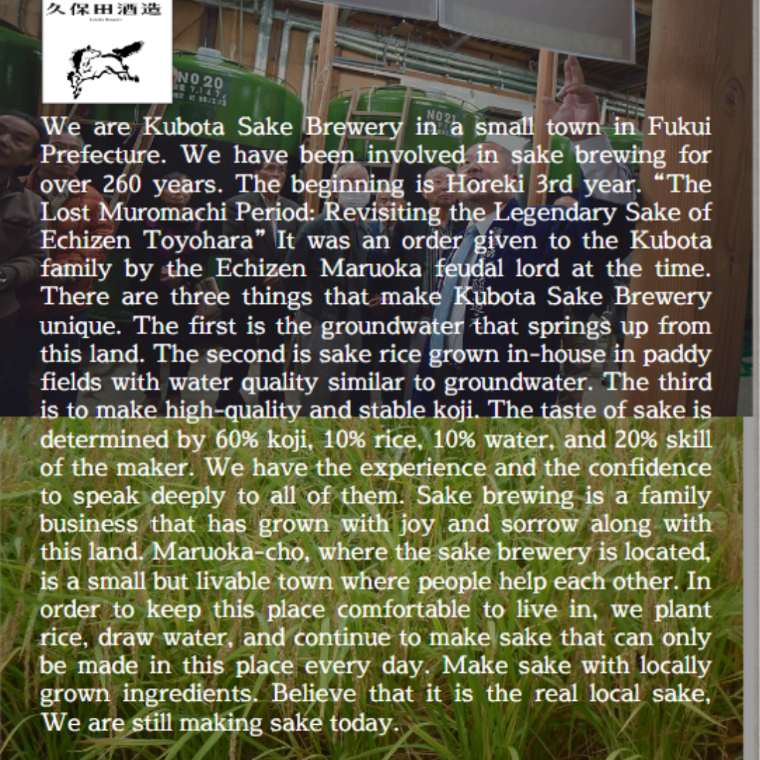 Ayane Junmai Ginjo Cái tên Ayane bắt nguồn từ tên con gái của chủ tịch công ty Yasuo Kiuchi. Ông Ayouno Kitaura(người đã thiết kế nhãn cho "Junmai Ginjo Sake Ayane", mà Công ty TNHH
