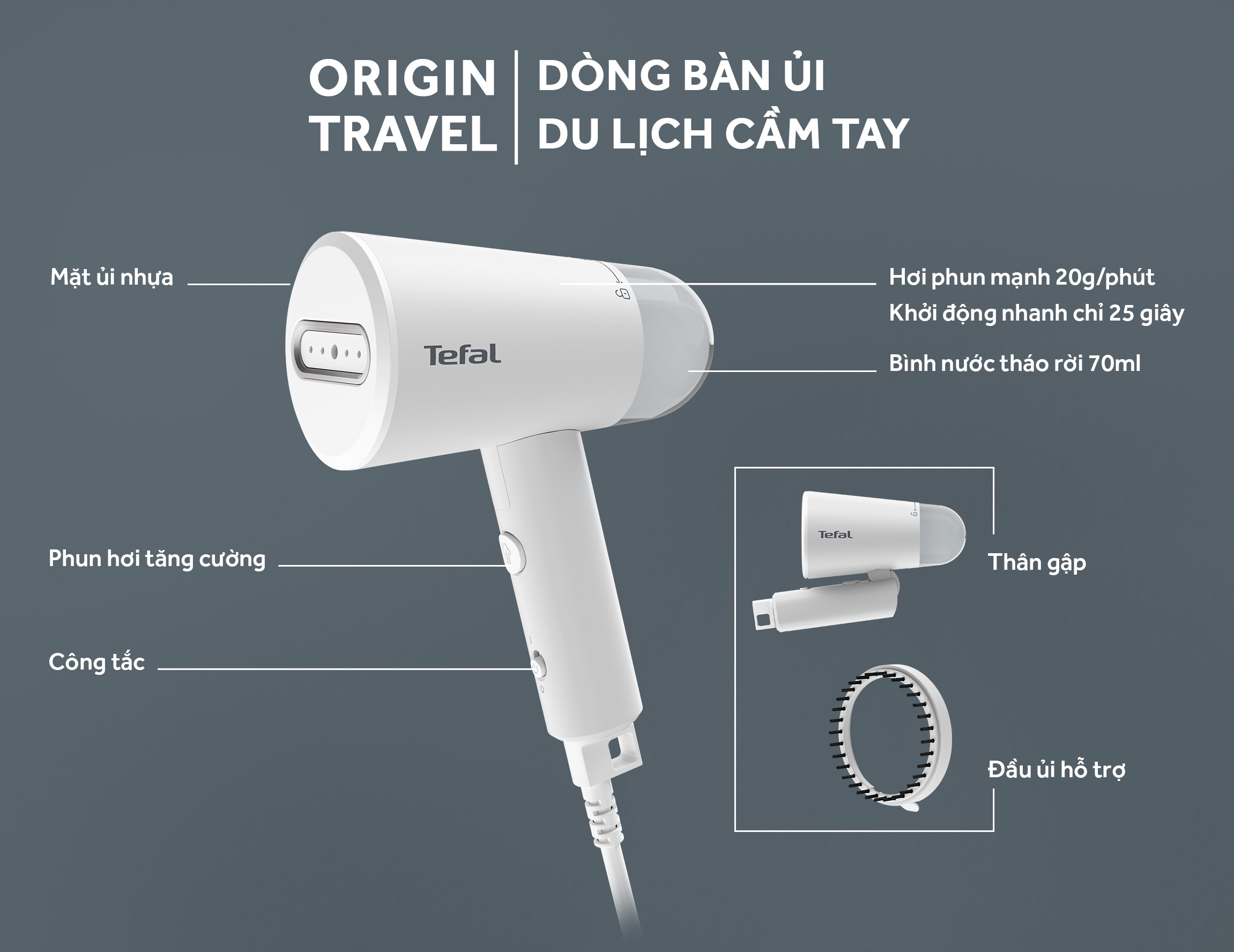 ✨[SẢN PHẨM MỚI] Bàn ủi hơi nước cầm tay Tefal Origin Travel DT1020E1 - Hàng chính hãng