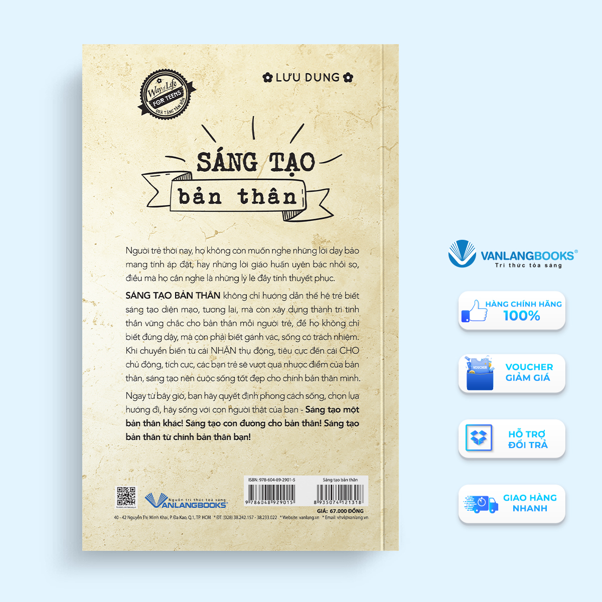 Không áp dụng đổi trả do nhu cầuSáng Tạo Bản Thân - VanlangbooksGiới thiệuNgười trẻ thời nay, họ không còn muốn nghe những lời dạy bảo mang tính áp đặt, hay những lời giáo huấn uyên bác nhồi sọ,...