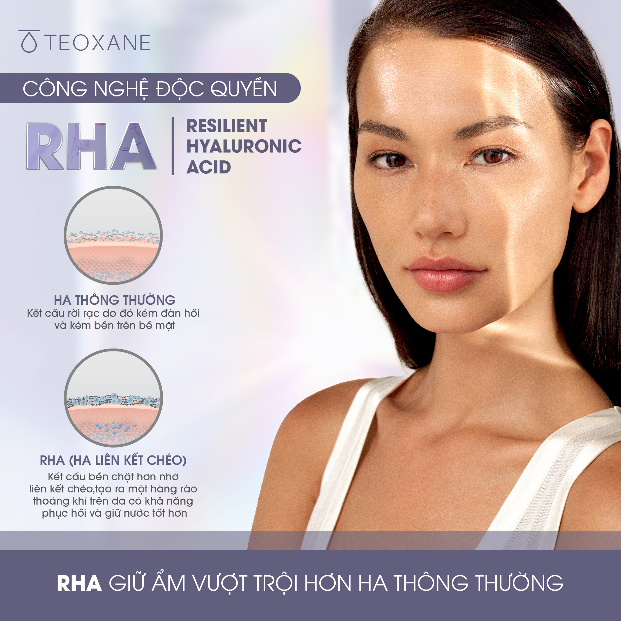 - Sự kết hợp các chất chống oxy hóa Đặc tính của các thành phần chính: RHA resilient hyaluronic acid - Giữ ẩm lâu và củng cố hàng rào bảo vệ da NowHyal - Thành phần tự nhiên của HA Dermo –restructuring Complex - Tạo sức sống mới và bảo vệ Các thành phần khác: Unitamuron H22 - Hỗ trợ duy trì độ ẩm và hiệu quả chống oxy hóa.