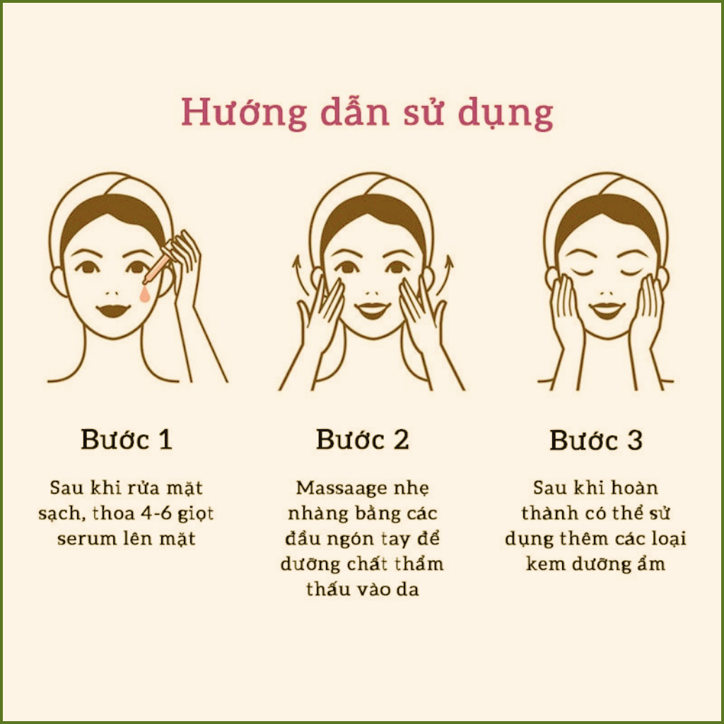 - Rửa sạch mặt, lấy 1-2 giọt serum thoa đều lên mặt