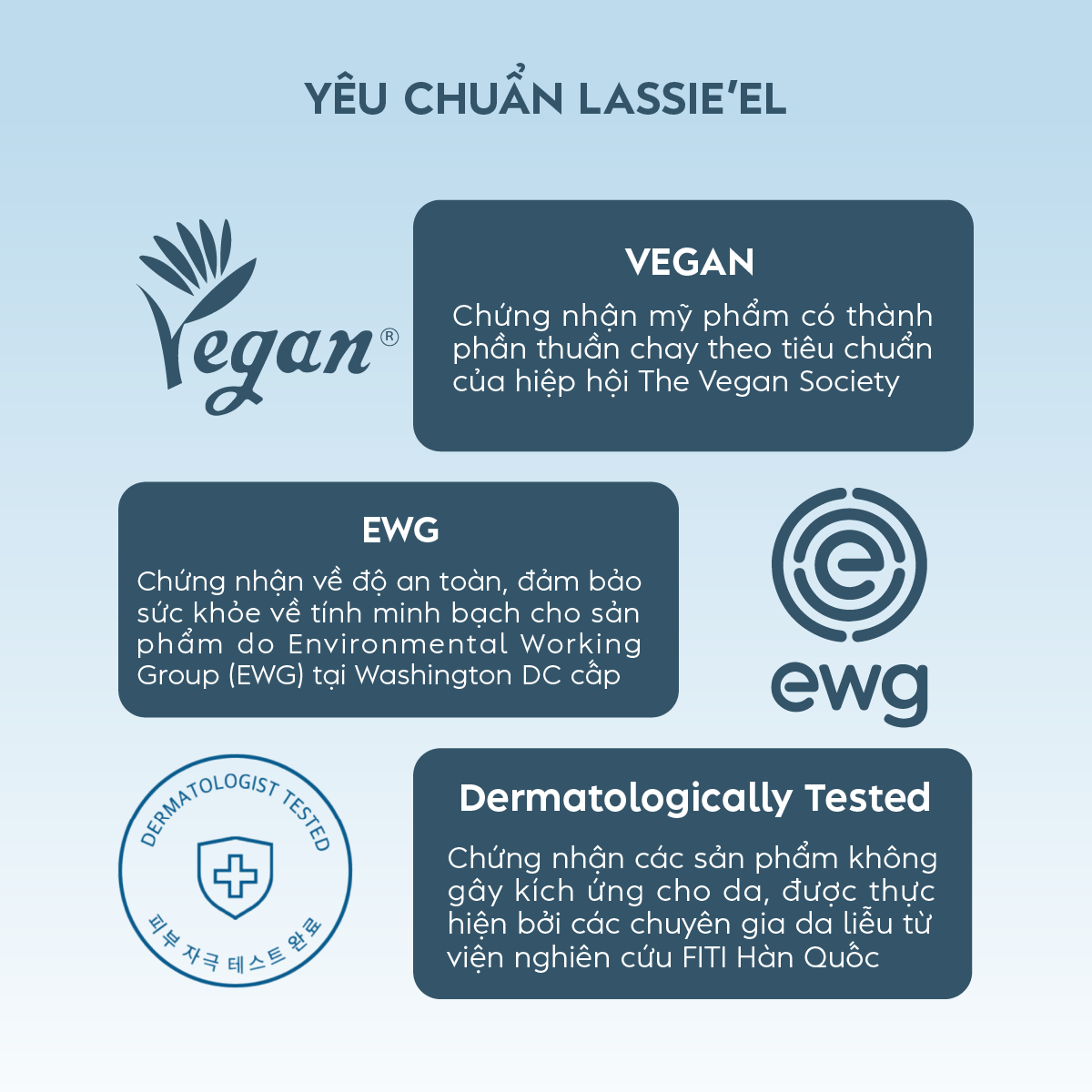 Serum Lassie'el là một phức hợp dưỡng chất cấp ẩm sâu, ngăn ngừa lão hóa, phục hồi, hỗ trợ dưỡng trắng giảm mụn và làm dịu da với sức mạnh của Angelica Keiskei. Nhờ thành phần giàu dưỡng chất, serum Lassie'el đem lại cho bạn một làn da căn bóng ẩm mịn, tăng độ đàn hồi da. Sản phẩm đã hoàn thành 9 loại kiểm nghiệm lâm sàng chứng nhận công dụng sau 4 tuần sử dụng