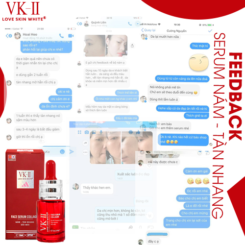 Serum dưỡng trắng tái tạo da: - Thành phần: Aqua, Aloe Barbadensis Leaf Juice, Glycerin, Triethanolamine (1,0 %), Phellodendron Amurense Bark Extract, Carbomer, Tocopheryl Acetate, Hydrolyzed Collagen, Boric Acid (0,5 %), Salicylic Acid (0,2 %),
