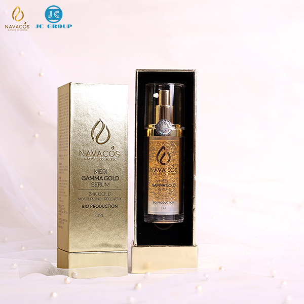 Tinh chất dưỡng da chiết xuất từ vàng Nano 24K nguyên chất có nguồn gốc từ Thụy Sỹ, độ tinh khiết cao, với công nghệ nano vượt trội các phân tử vàng kích thước siêu nhỏ 100nm, siêu mịn, dễ thẩm thấu, công nghệ cao cấp giúp tẩy độc tố tăng hệ miễn dịch, chống oxi hóa cao, vô hiệu hóa gốc tự do cho làn da, chống lão hóa cho da mạnh mẽ, làm dịu da hỗ trợ giải quyết mụn hiệu quả mang lại làn da trắng sáng, căng mịn, khỏe mạnh.