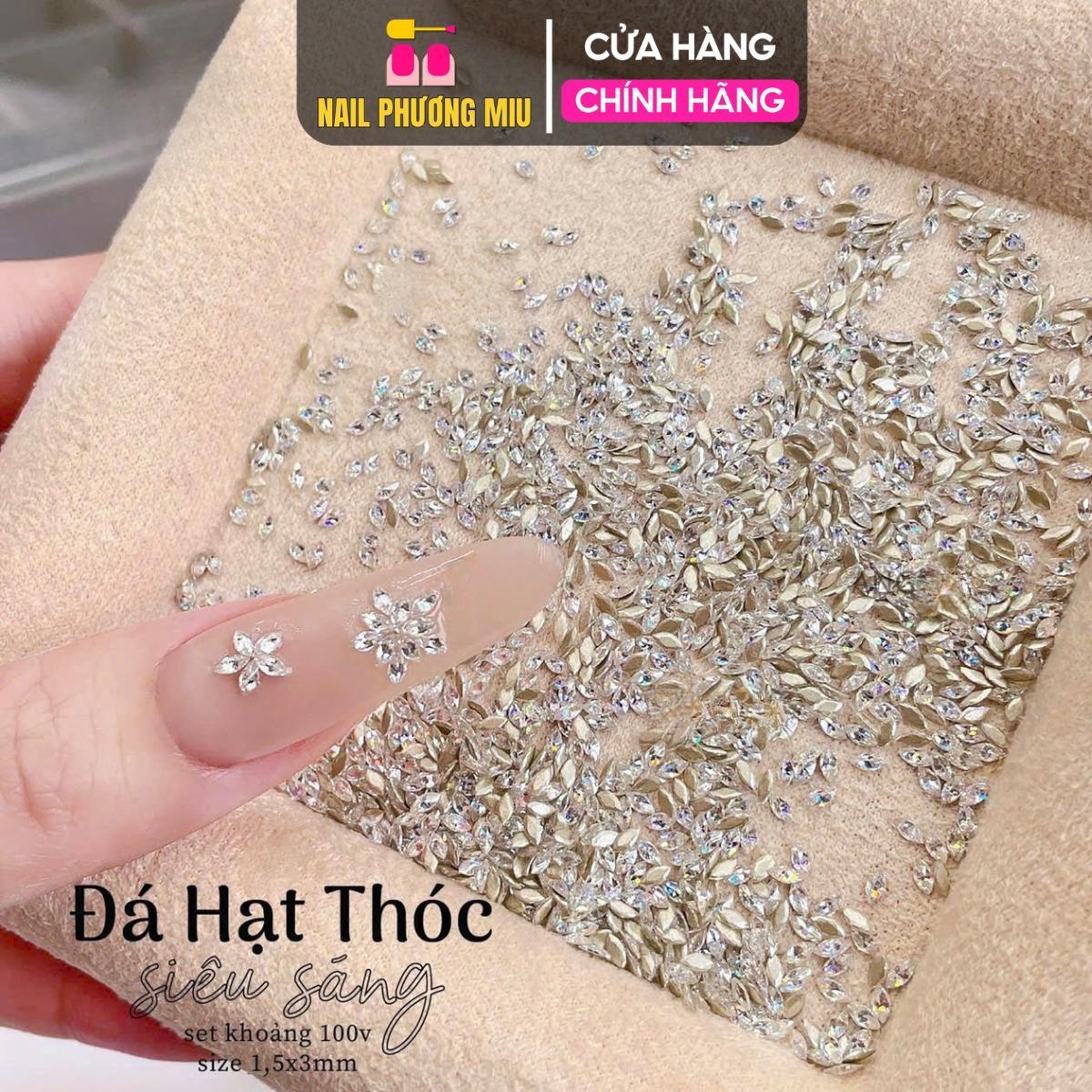 ✨Set 100 Viên Đá Khối Hạt Thóc Hạt Gạo Chân Bằng, Chân Nhọn Lấp Lánh Chân Vàng Size Mini Cao Cấp Làm Nail Siêu Sáng Đẹp Đính Móng Nữ Women