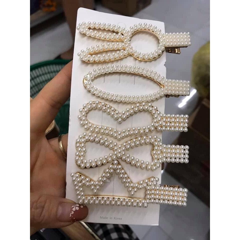 PVN27191 Set 7 kẹp tóc nữ đính hạt trai phong cách Hàn Quốc T2