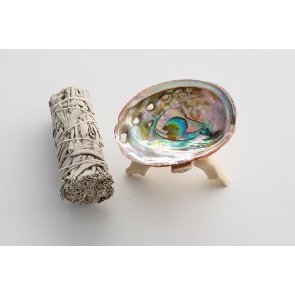✨Sét 3 món xô thơm trắng white sage + 1 vỏ ốc Ô4 8cm + 1 chân gỗ xoài
