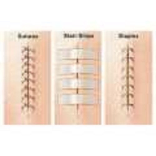 Bước 6. Dán lần lượt các tép đến 2 đầu vết thương. Mỗi tép cách nhau khoảng từ 0,3cm – 0,5cm.