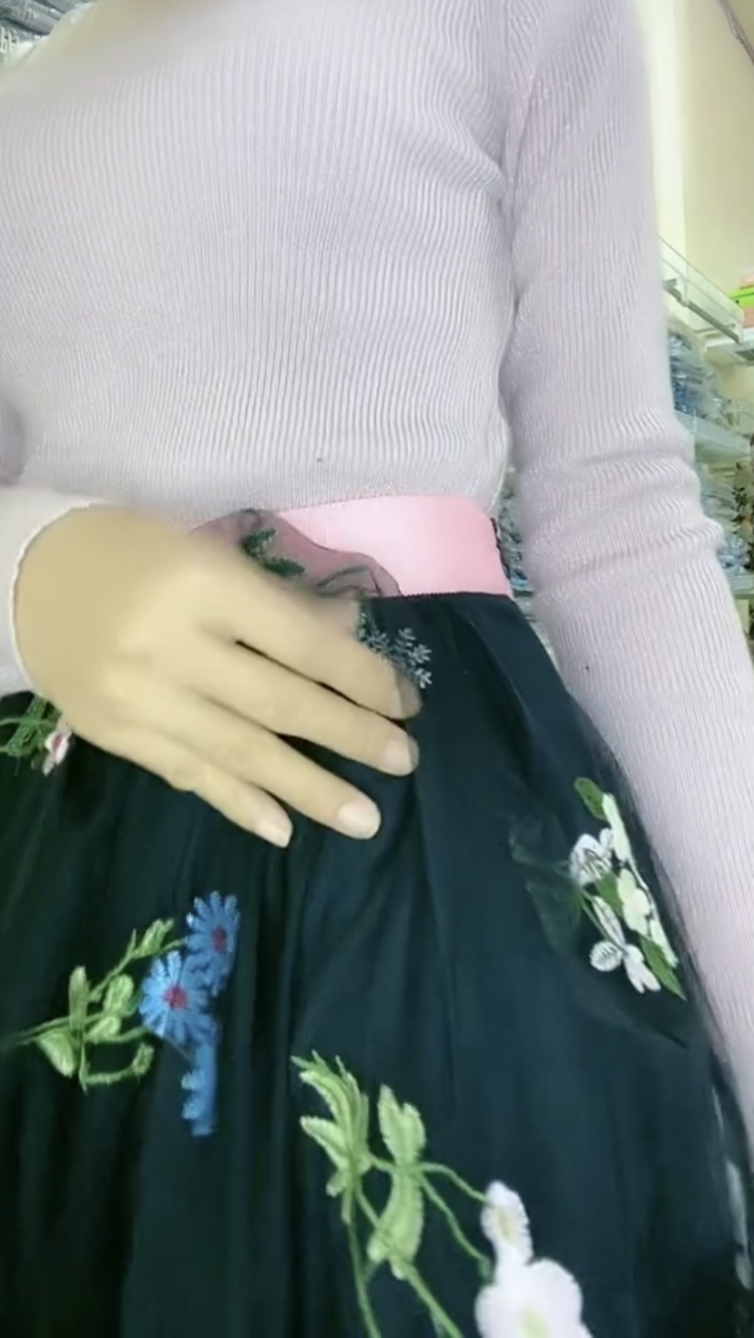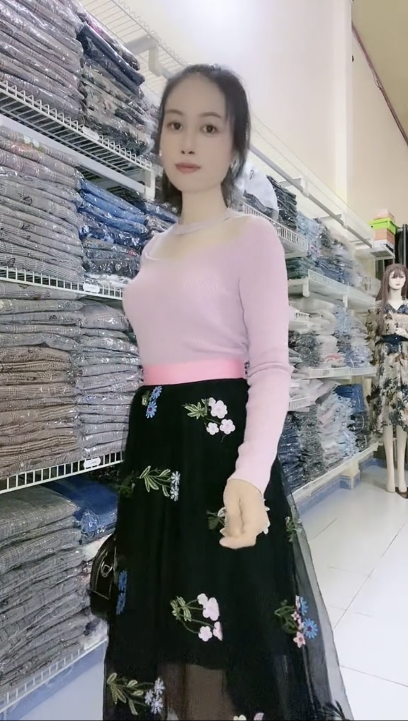 chất liệu vải lụa thêu hình cá ngọc quần váy thời trang có thể che đi khuyết điểm cho các nàng nấm lùn shop có size S ngực 84 eo 70 M ngực 88 eo