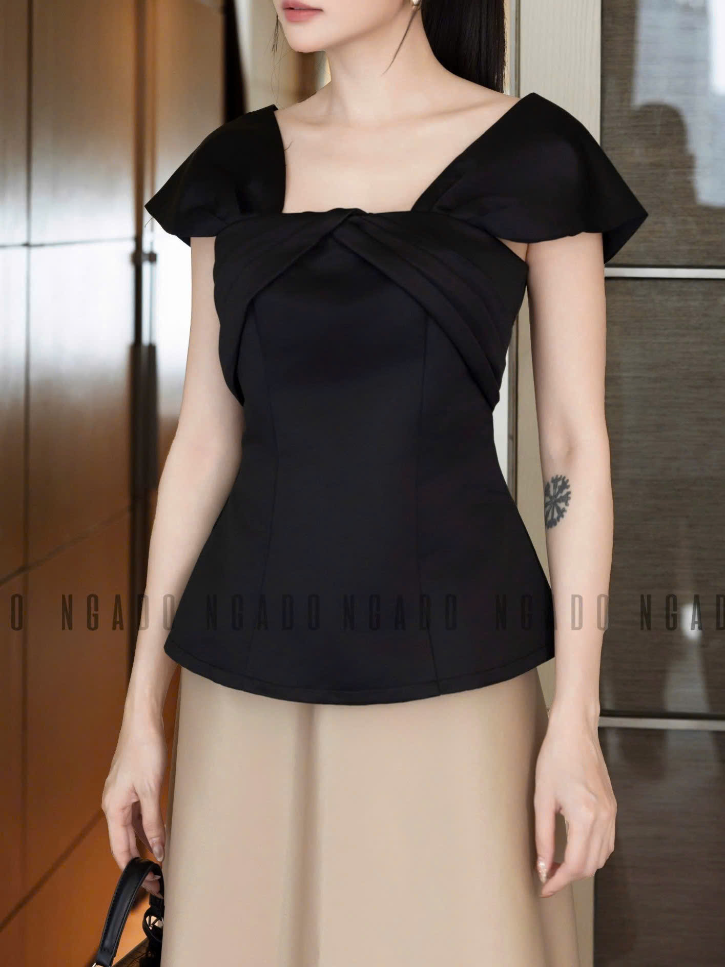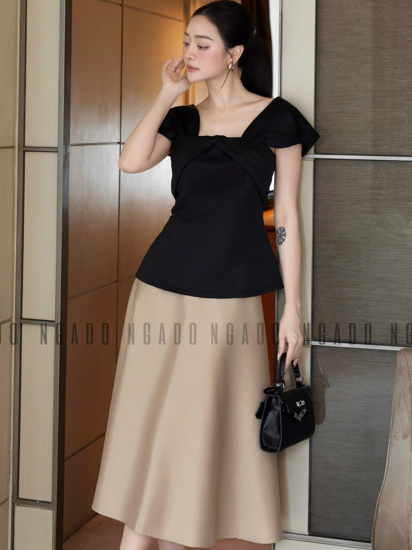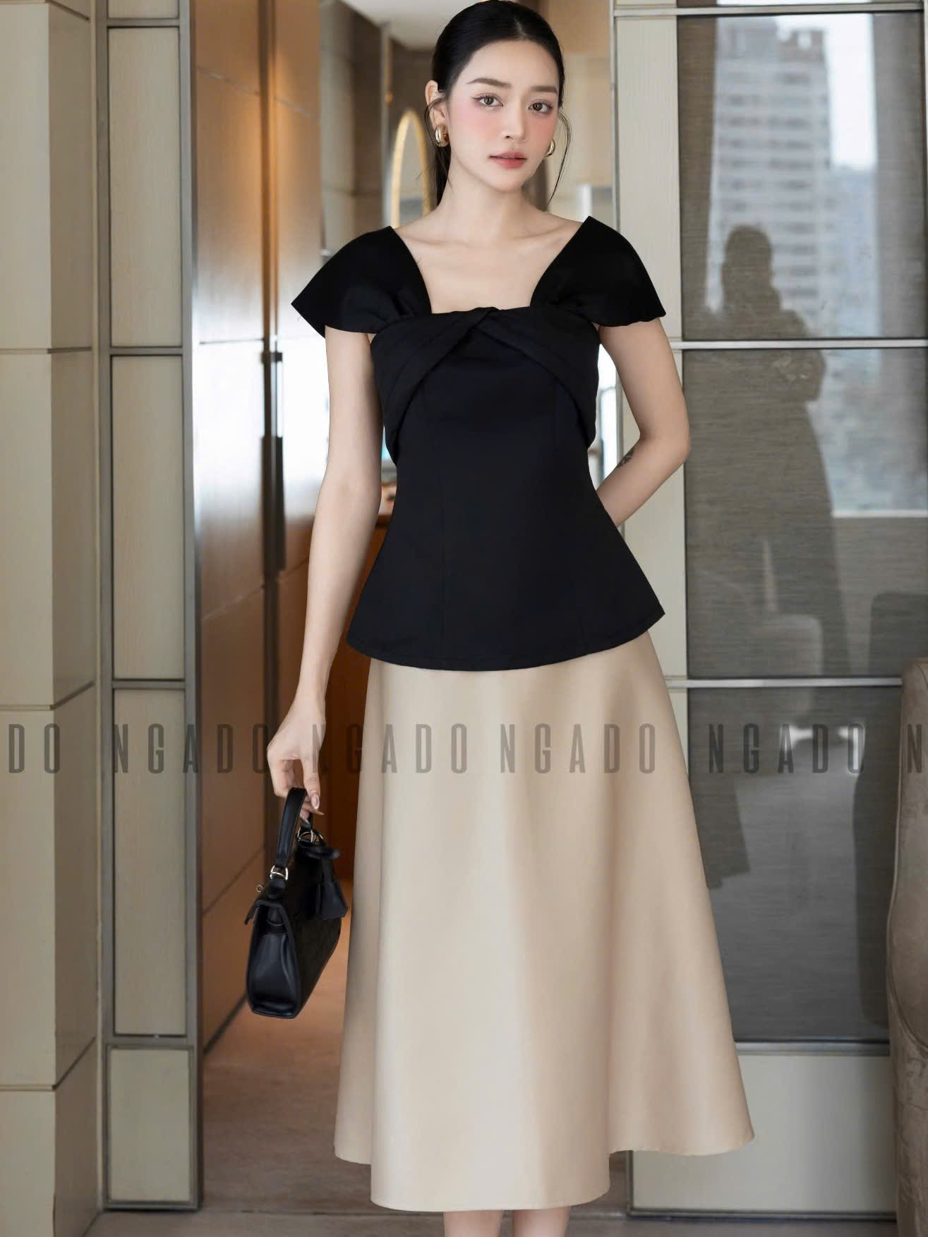 ✨Set áo váy đen nude tay con NGADO , set áo váy , set công sở