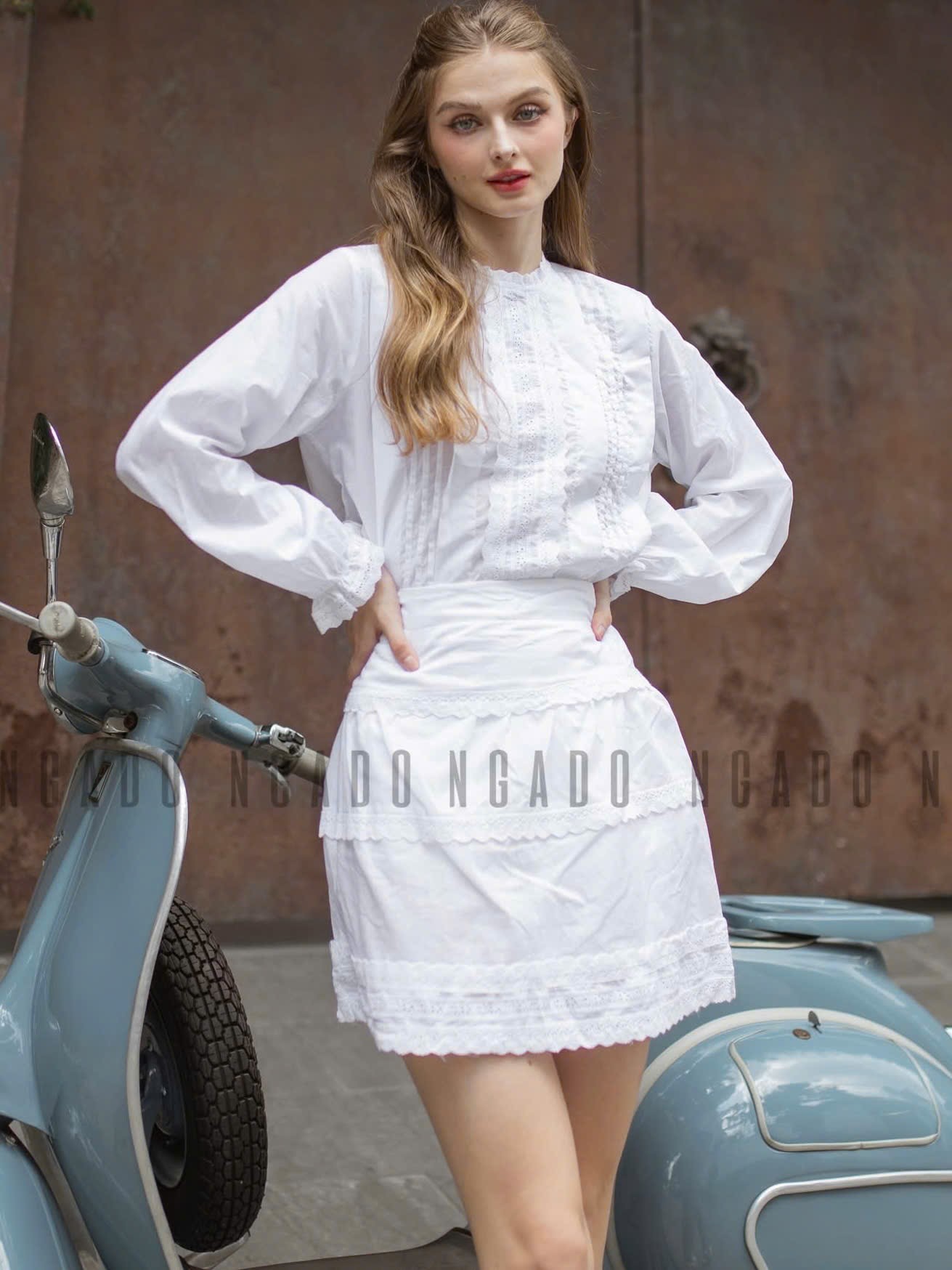 ✨Set áo váy trắng phối ren NGADO , set áo váy trắng , set áo váy nữ