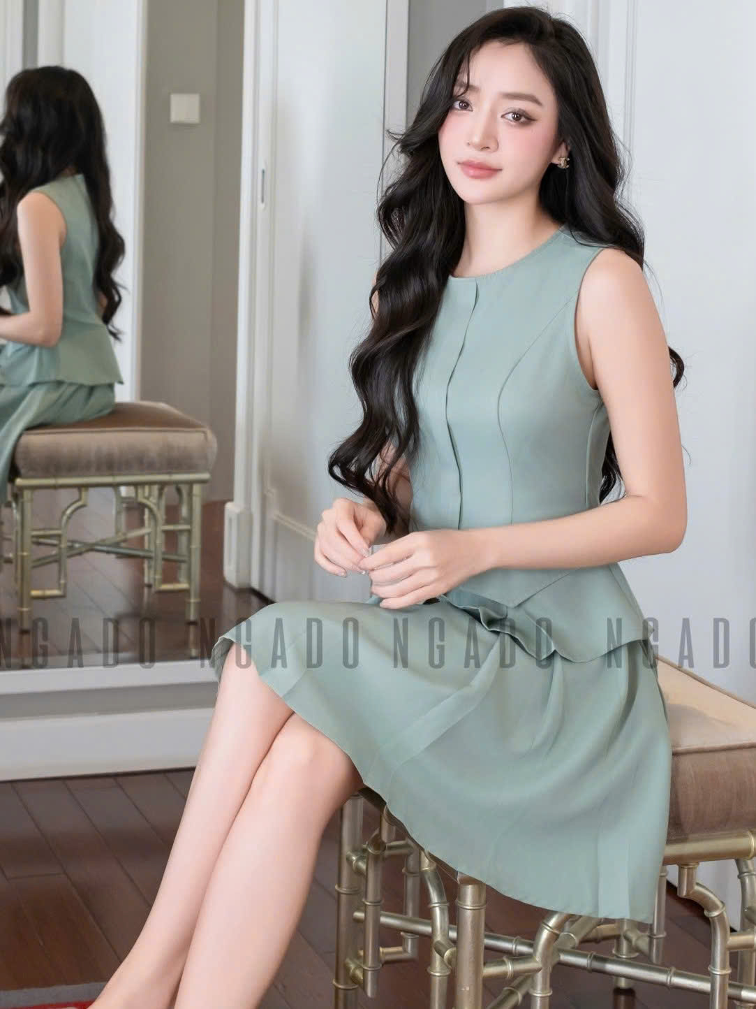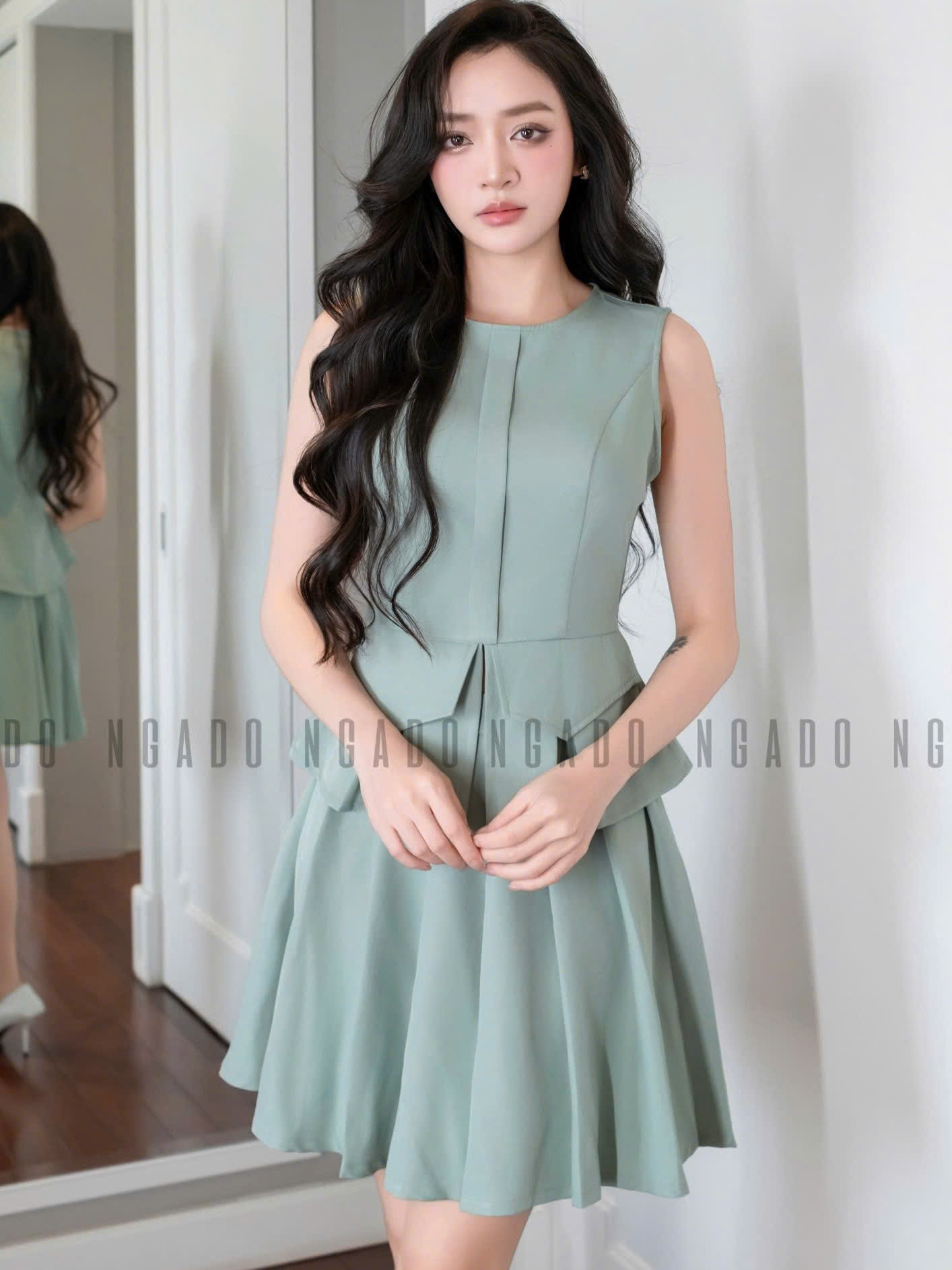 ✨Set áo váy xanh mint xếp ly NGADO , set áo váy ngắn , set áo váy nữ , set công sở